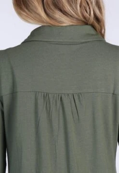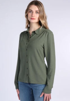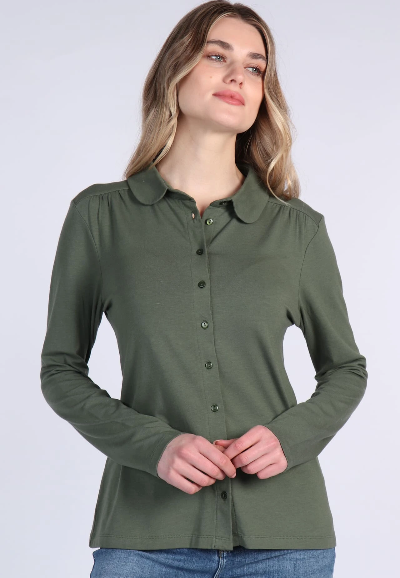 Vielseitig kombinierbar ist unsere elegante Jerseybluse Andya mit Retro-Charakter. Besonderes Highlight ist die Drapierung an den Schulternähten und der abgerundete Kragen. Aus weichem und nachhaltiger Jersey-Qualität gefertigt und angenehm auf der Haut zu tragen.