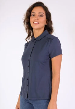 Länge 61cm (M). Vielseitig kombinierbar ist unsere Jerseybluse Andyra mit charmanten Bubikragen und einem Hauch von Retro. Besonderes hübsch ist die Drapierung an den Schulternähten und am Rücken. Aus einer weichen und nachhaltigen Jerseyqualität gefertigt, trägt sich sie sich super bequem.