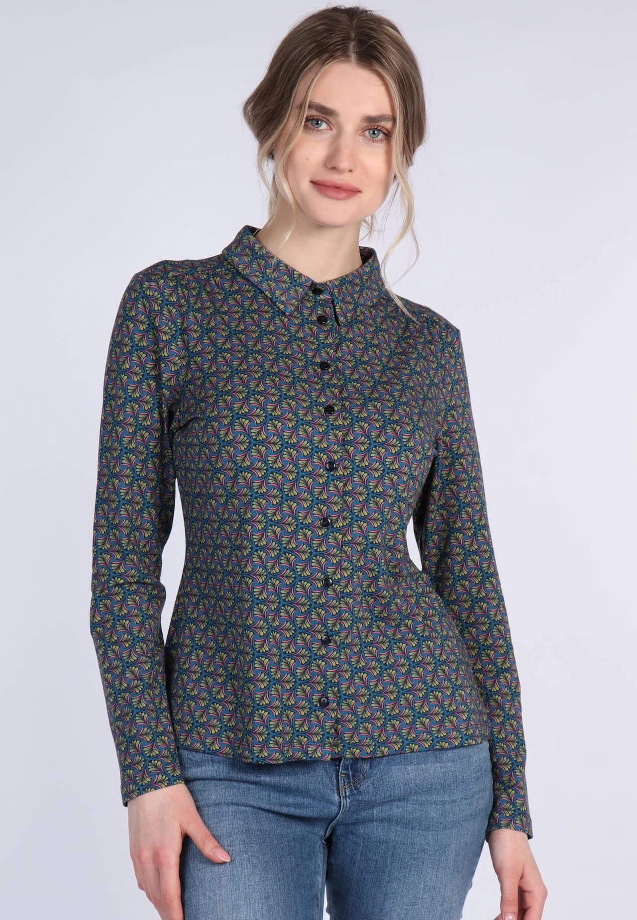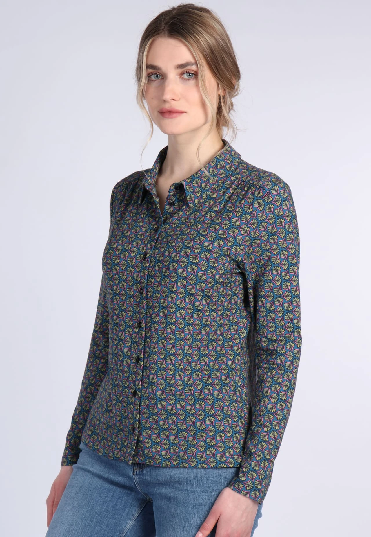 Vielseitig kombinierbar ist unsere elegante Jerseybluse Candy mit Retro-Charakter. Besonderes Highlight ist die Drapierung an den Schulternähten. Aus weicher und nachhaltiger Bambus-Baumwoll-Qualität gefertigt und angenehm auf der Haut zu tragen.