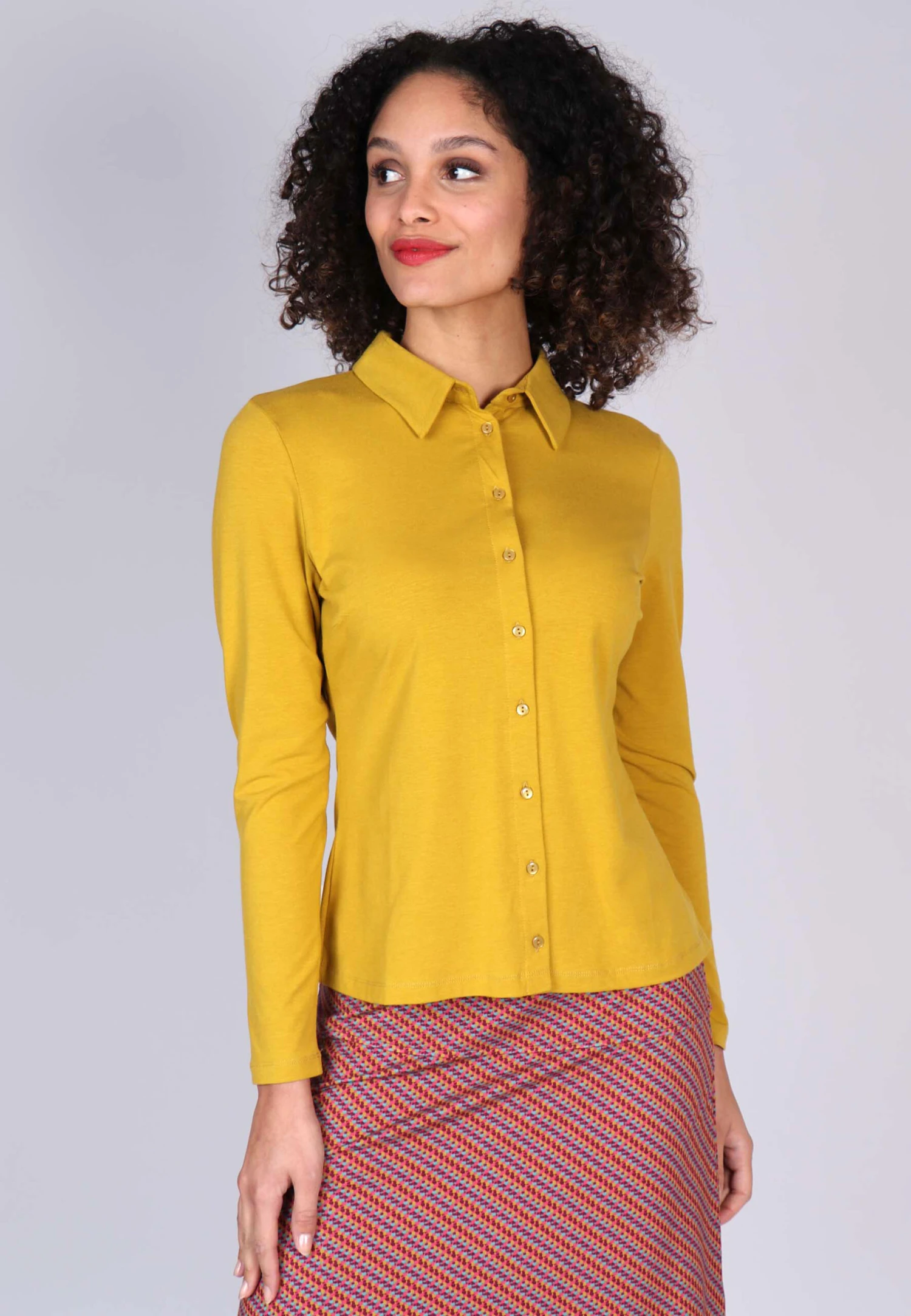 Gesamtlänge bei Größe M 60cm. Vielseitig kombinierbar ist unsere sportlich-elegante Jerseybluse Cylia mit Kragen. Aus weichem und nachhaltigem Viskosejersey gefertigt ist es angenehm auf der Haut und besonders bequem zu tragen.