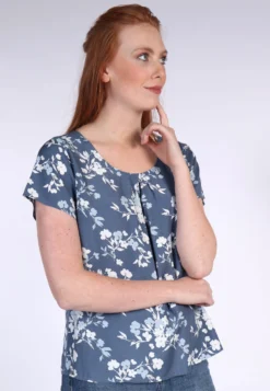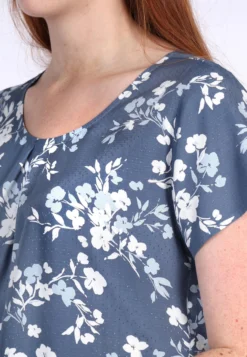 Gesamtlänge bei Größe M 63cm. Unsere hübsche Kurzarmbluse Sinje hat charmante Faltendetails am Rundhalsausschnitt und ist dank der schönen Strukturviskosequalität super angenehmauf der Haut zu tragen. Die bequeme Passform bietet zusätzlichen Tragekomfort. Der exklusive Sorgenfri Druck in tollen Farben rundet das Design ab.
