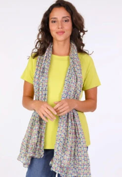 Gesamtlänge 175 cm x 130 cm. Dieses Dreieckstuch bezaubert durch die schönen Farben und das angenehme Material. Es besitzt ein zartes Muster und eine Rollkante als Abschluss.