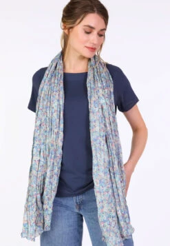Gesamtlänge 175 cm x 130 cm. Dieses Dreieckstuch bezaubert durch die schönen Farben und das angenehme Material. Es besitzt ein zartes Muster und eine Rollkante als Abschluss.