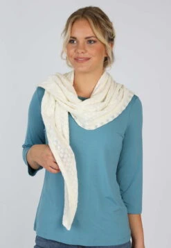 Länge 170 cm x 120 cm. Dieses Tuch bezaubert durch die schönen Farben und das aufwendige Ajour-Muster. Die weiche Bio-Baumwolle ist sehr angenehm zu tragen und veredelt dieses wundervolle Accessoire.