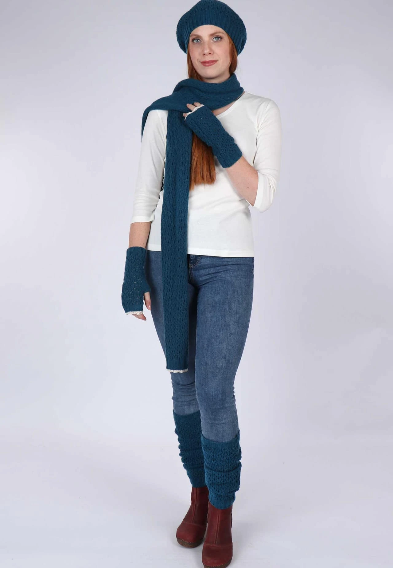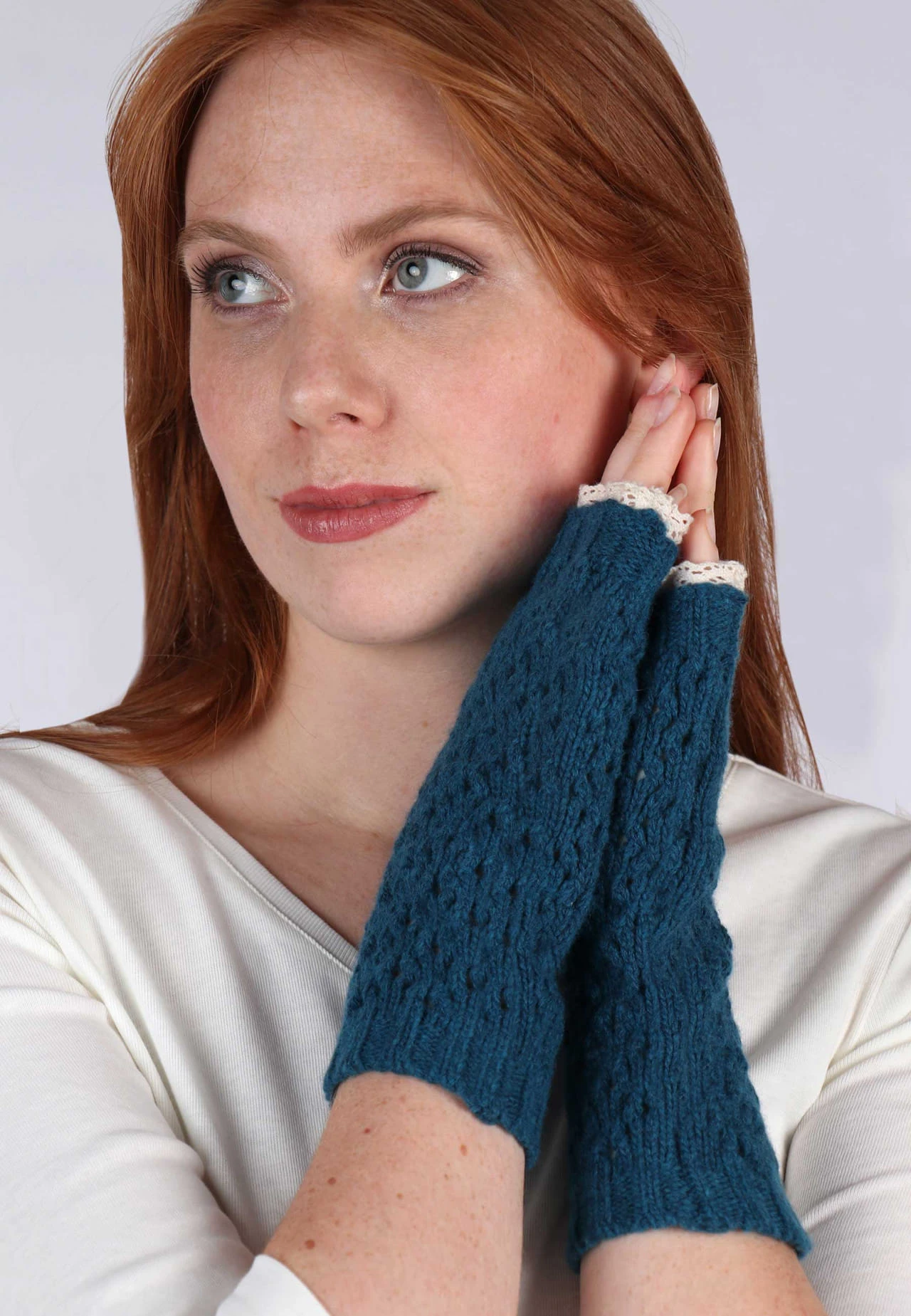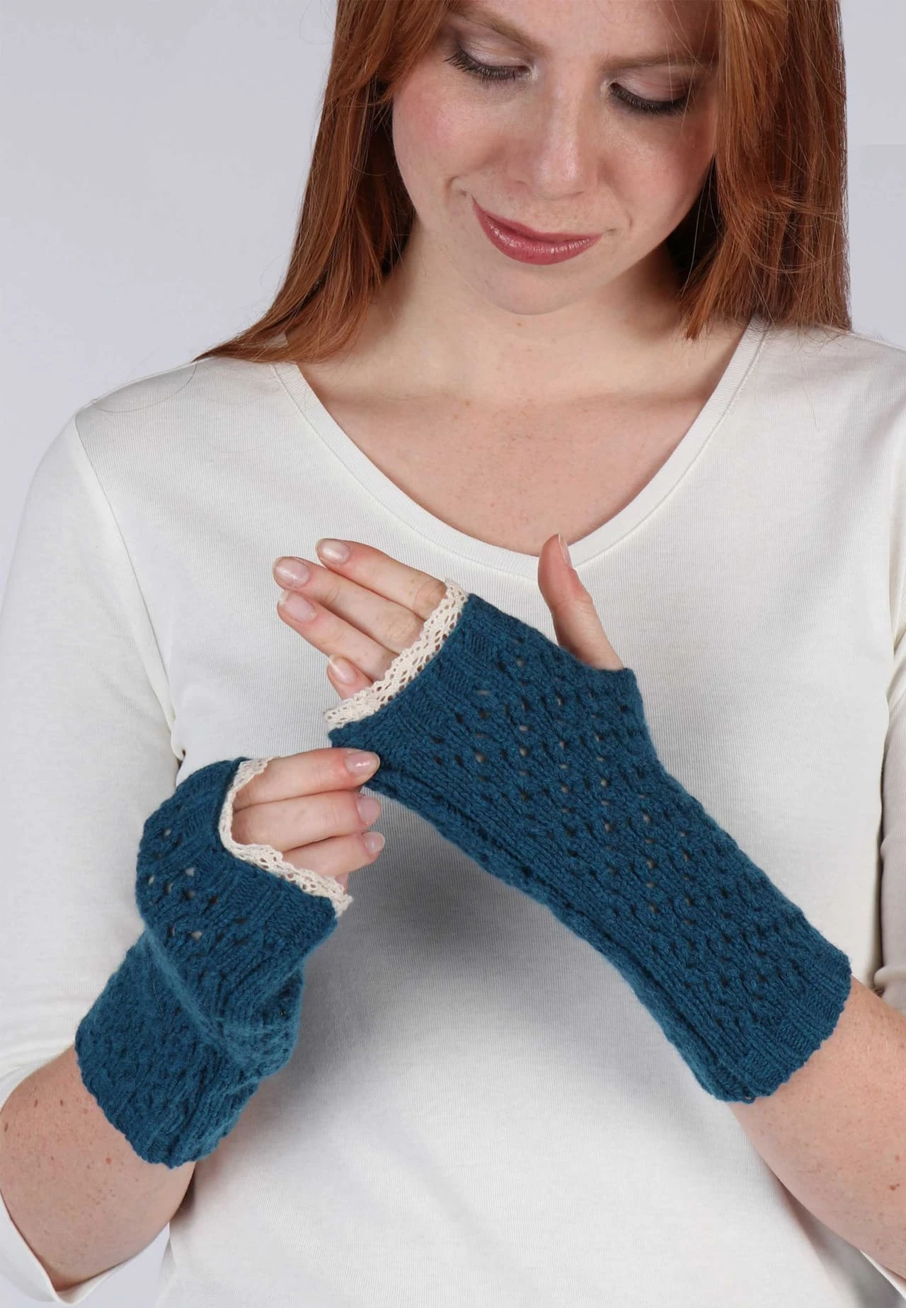 Diese Handstulpe ist der perfekte Begleiter für kühle Tage. Die Daumenlöcher sorgen für eine tolle Passform. Das schöne Ajourmuster und die zarte Spitzenkante runden den femininen Winterlook ab.