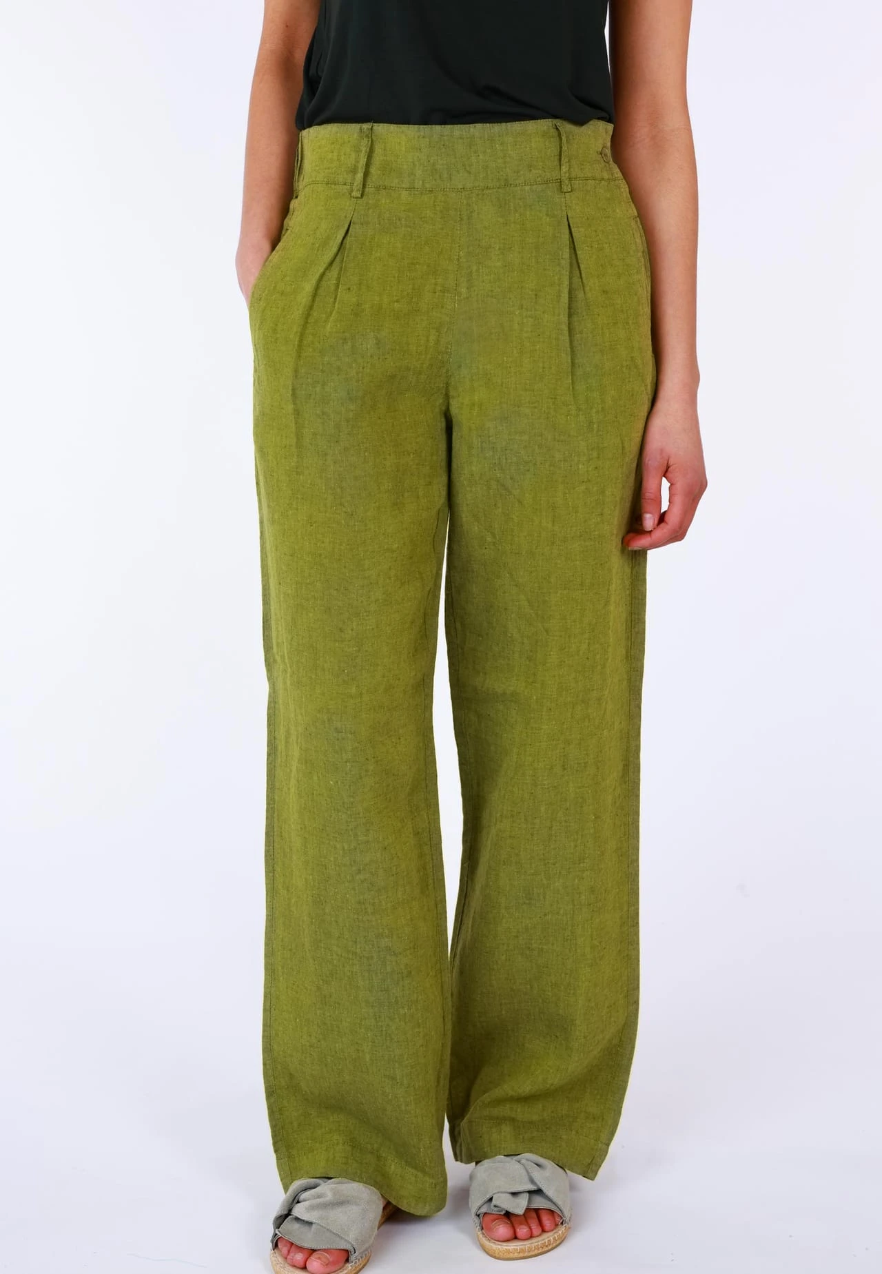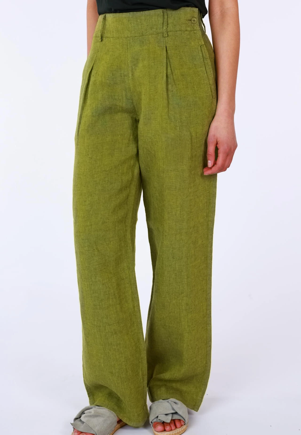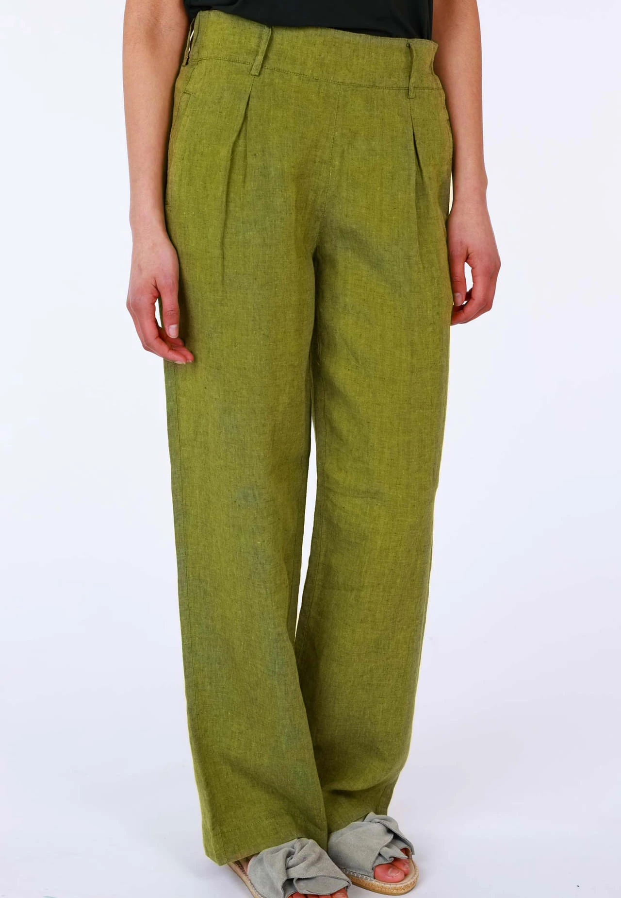 Leinenhose mit hohem Bund, seitlichem Knopf, Gürtelschlaufen, seitlichen Eingrifftaschen. Das Material verspricht ein super angenehmes Tragegefühl, einen perfekten Sitz und Formbeständigkeit für jeden Tag. Durch den hohen Bund zaubert sie eine feminine Sillhouette – klassisch und vielseitig zu kombinieren macht es Grietje zum idealen Style für jede Gelegenheit.