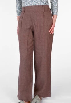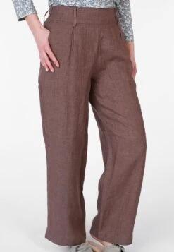 Leinenhose mit hohem Bund, seitlichem Knopf, Gürtelschlaufen, seitlichen Eingrifftaschen. Das Material verspricht ein super angenehmes Tragegefühl, einen perfekten Sitz und Formbeständigkeit für jeden Tag. Durch den hohen Bund zaubert sie eine feminine Sillhouette – klassisch und vielseitig zu kombinieren macht es Grietje zum idealen Style für jede Gelegenheit.