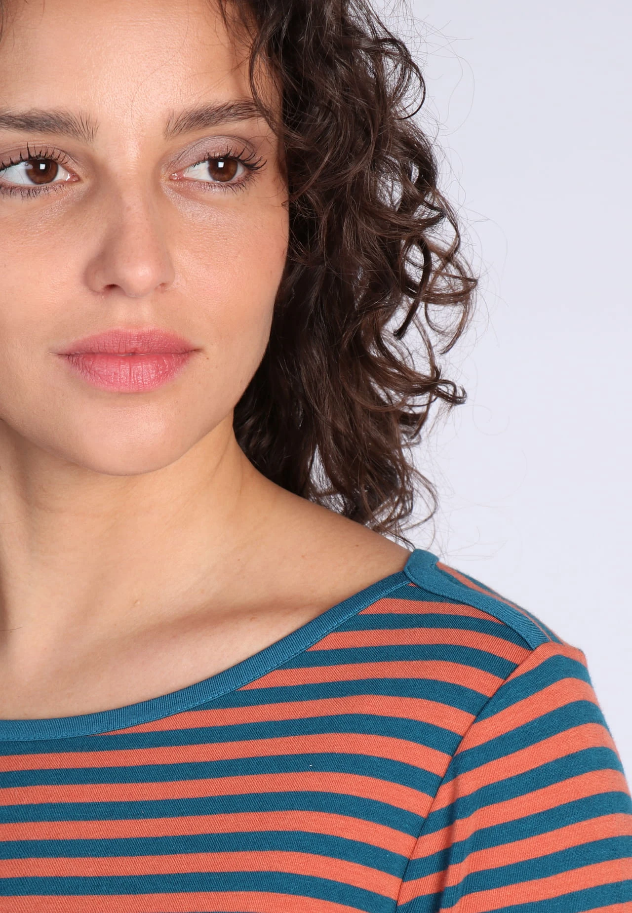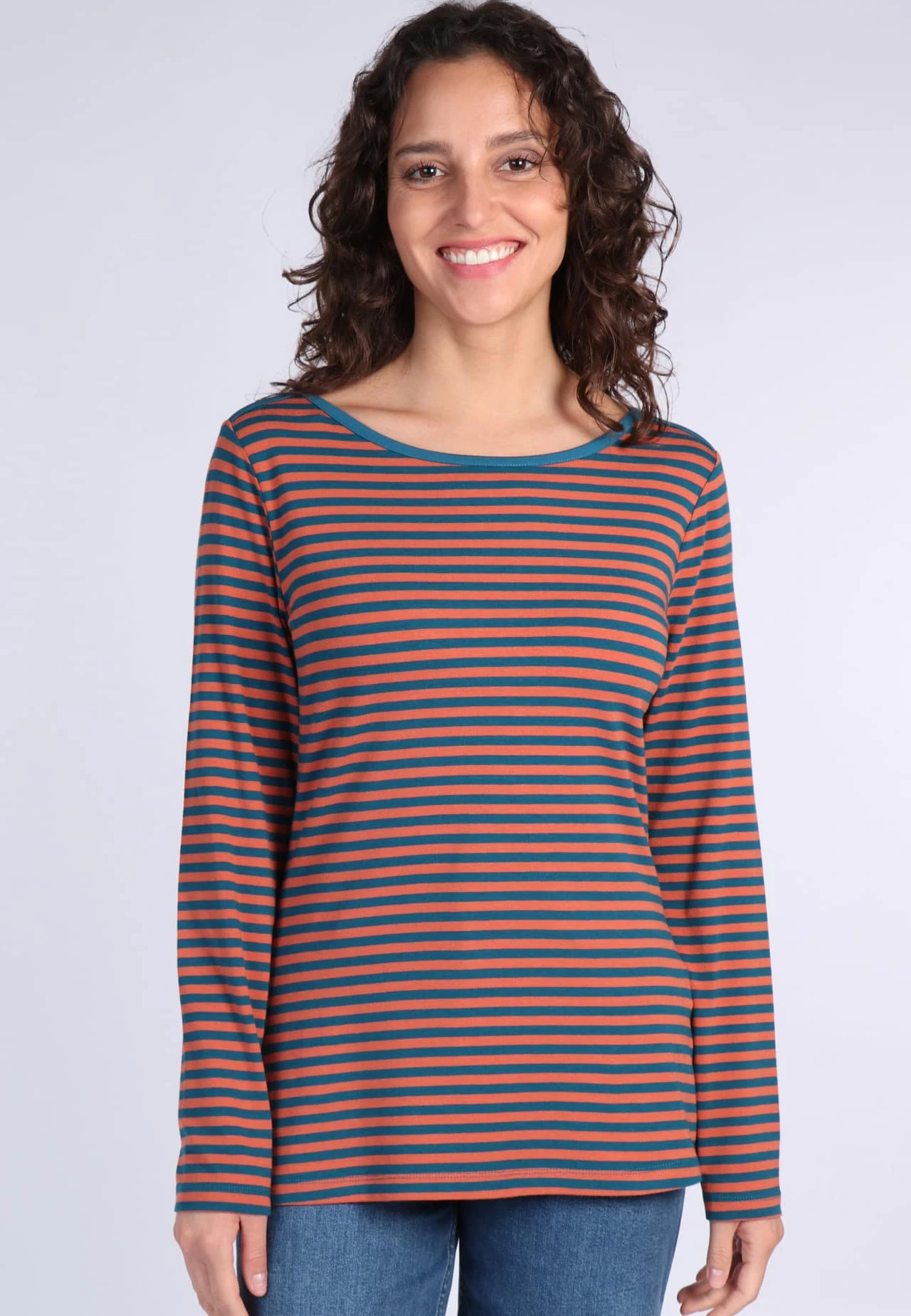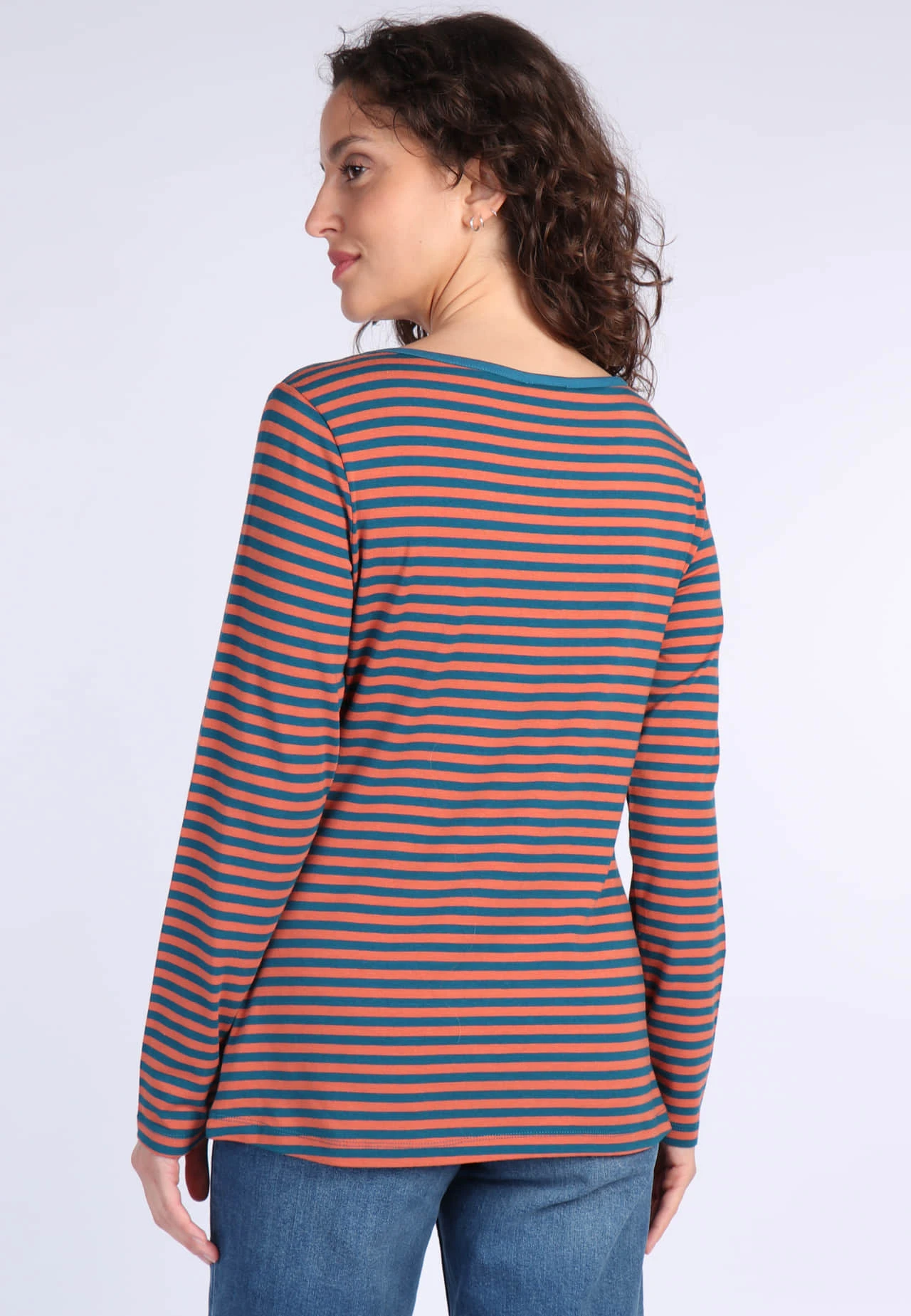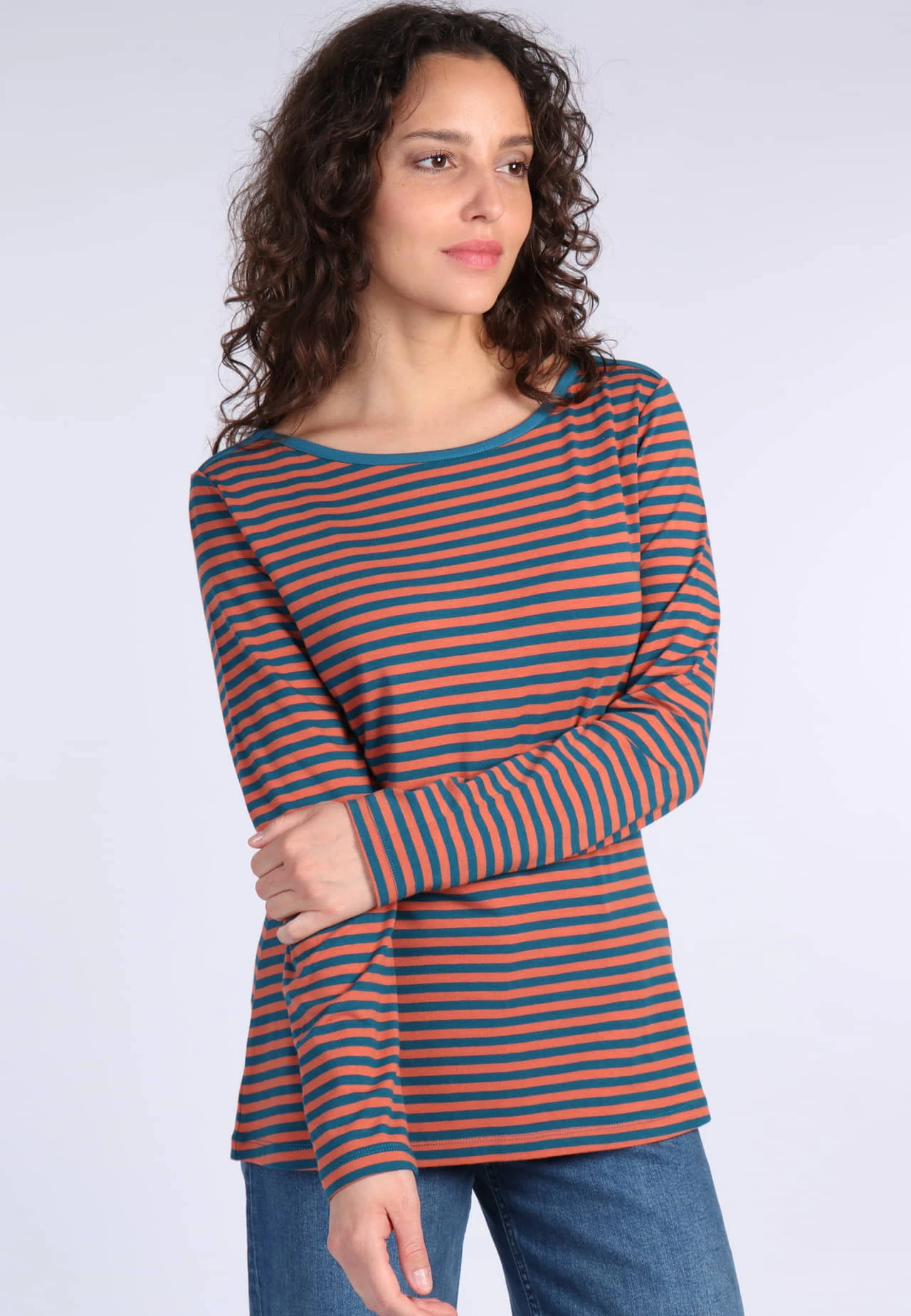 Schönes Shirt mit farblich tonal eingefasstem Ausschnitt und langem Arm. Mit klassischem Streifenmuster und angenehmer Passform ist das Langarmshirt der ideale Begleiter für jeden Tag.