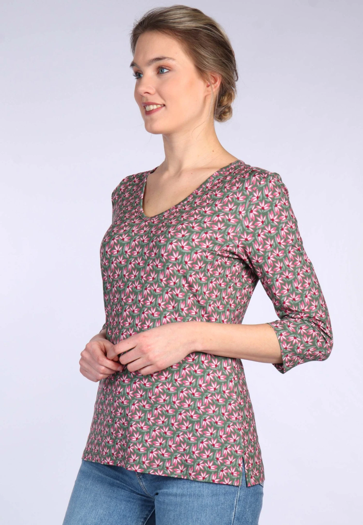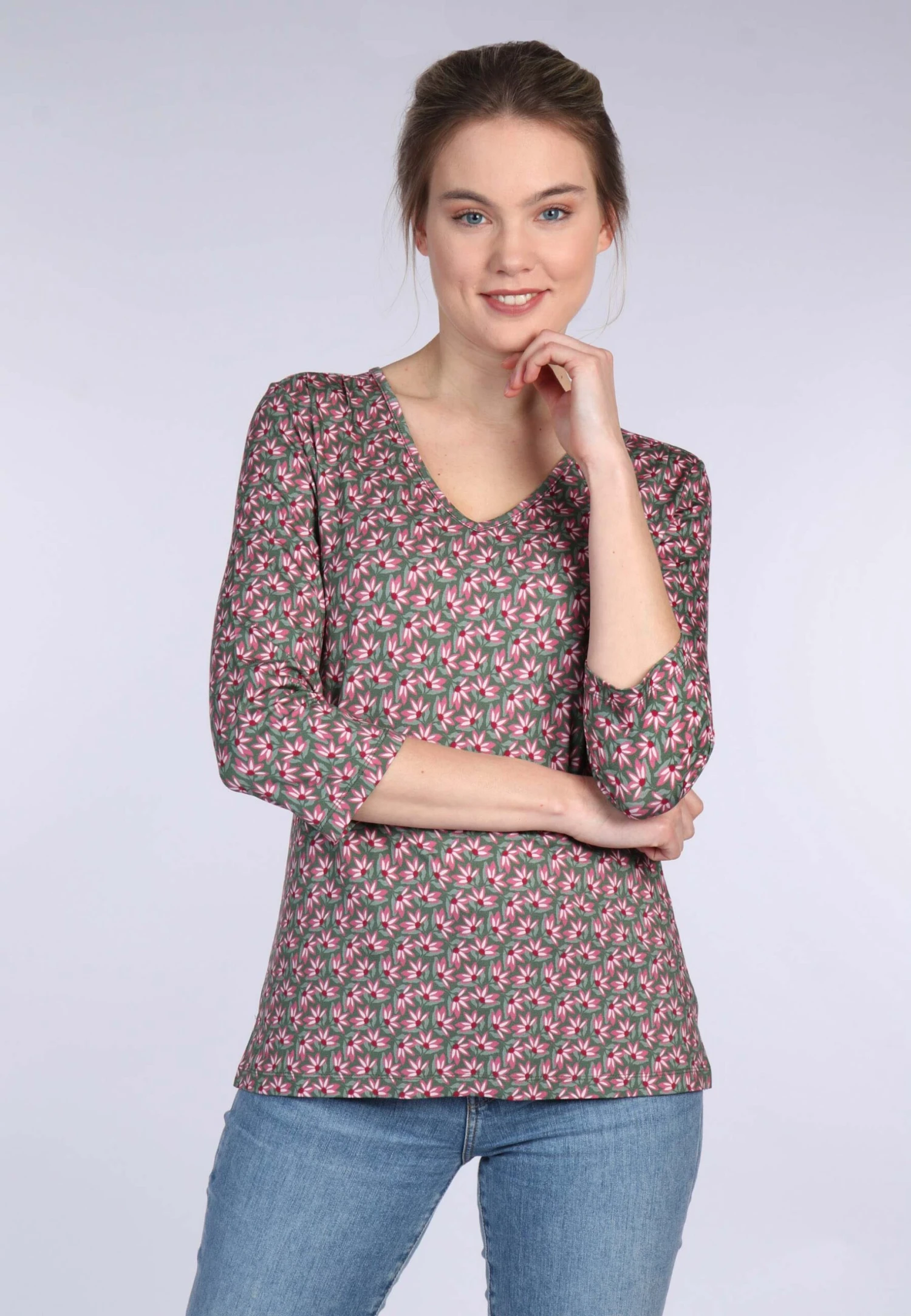Gesamtlänge bei Größe M 64cm. Unser T-Shirt Norja mit raffinierten Faltendetails an der Schulter passt super zu Jeans wie auch zu Webhosen.