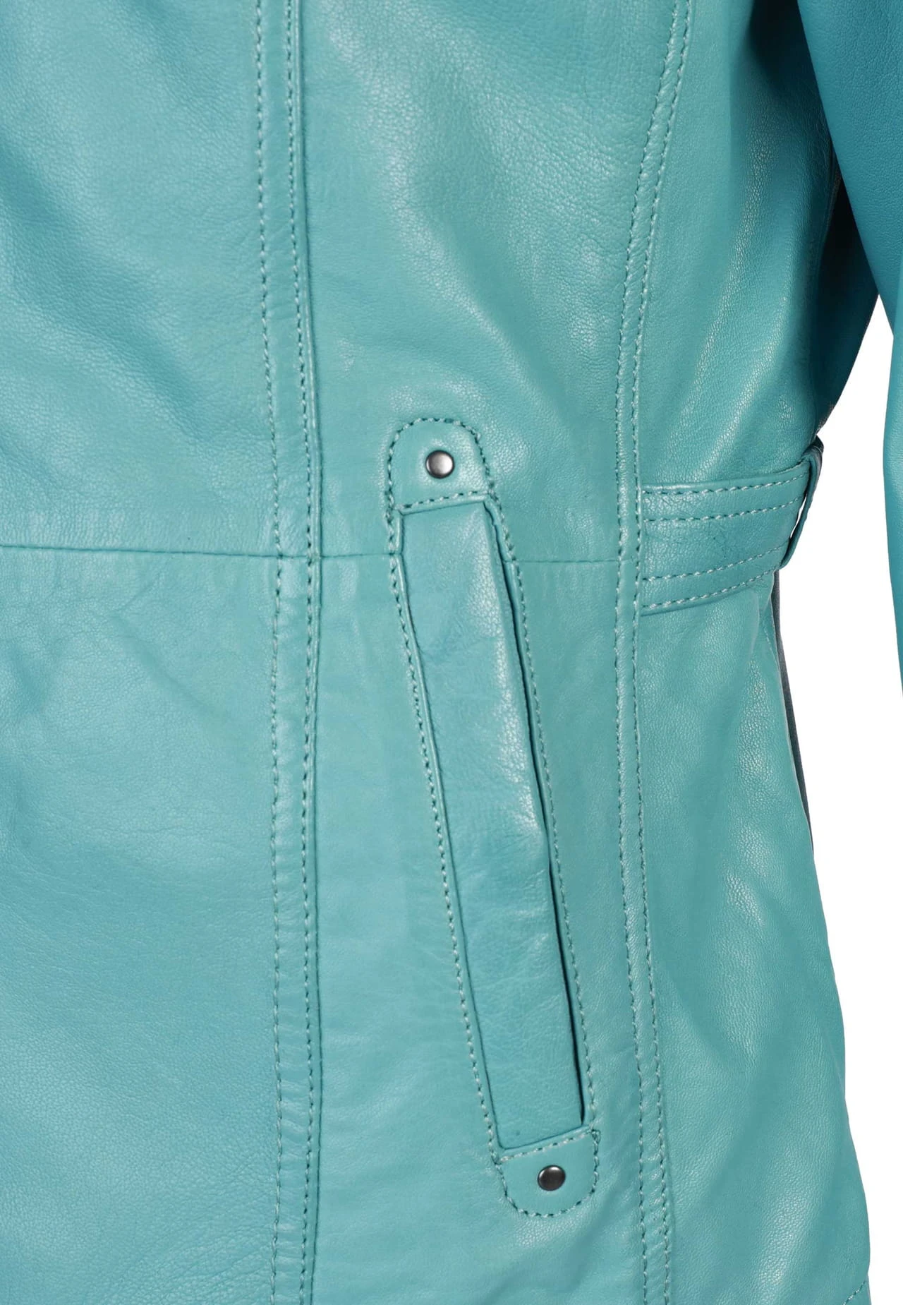Diese schöne Lederjacke ist aus hochwertigem, echtem Leder gefertigt und wurde sorgfältig verarbeitet, um höchste Qualität und Langlebigkeit zu gewährleisten. Der robuste Reißverschluss ermöglicht ein einfaches An- und Ausziehen und verleiht der Jacke einen Hauch von Modernität.