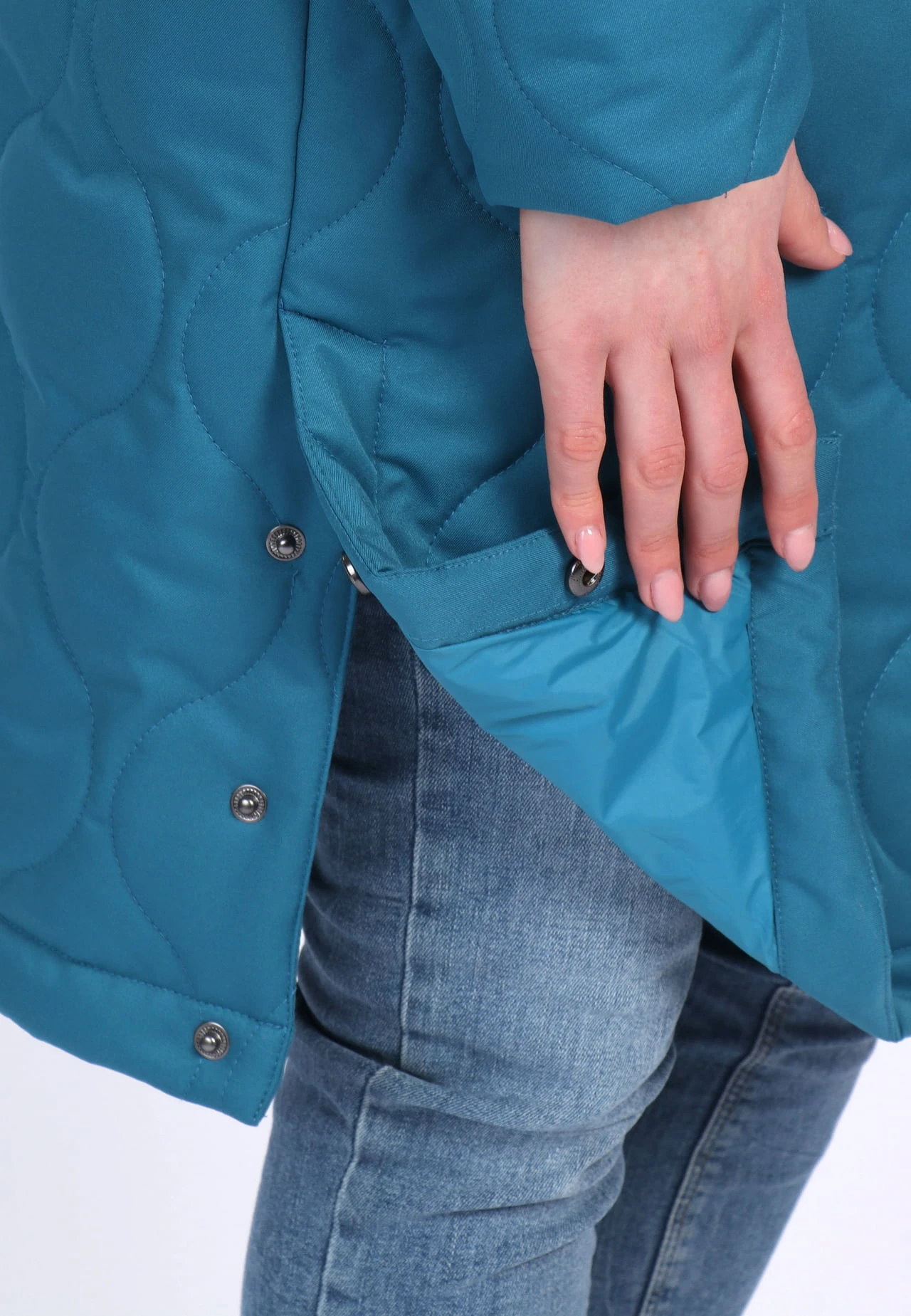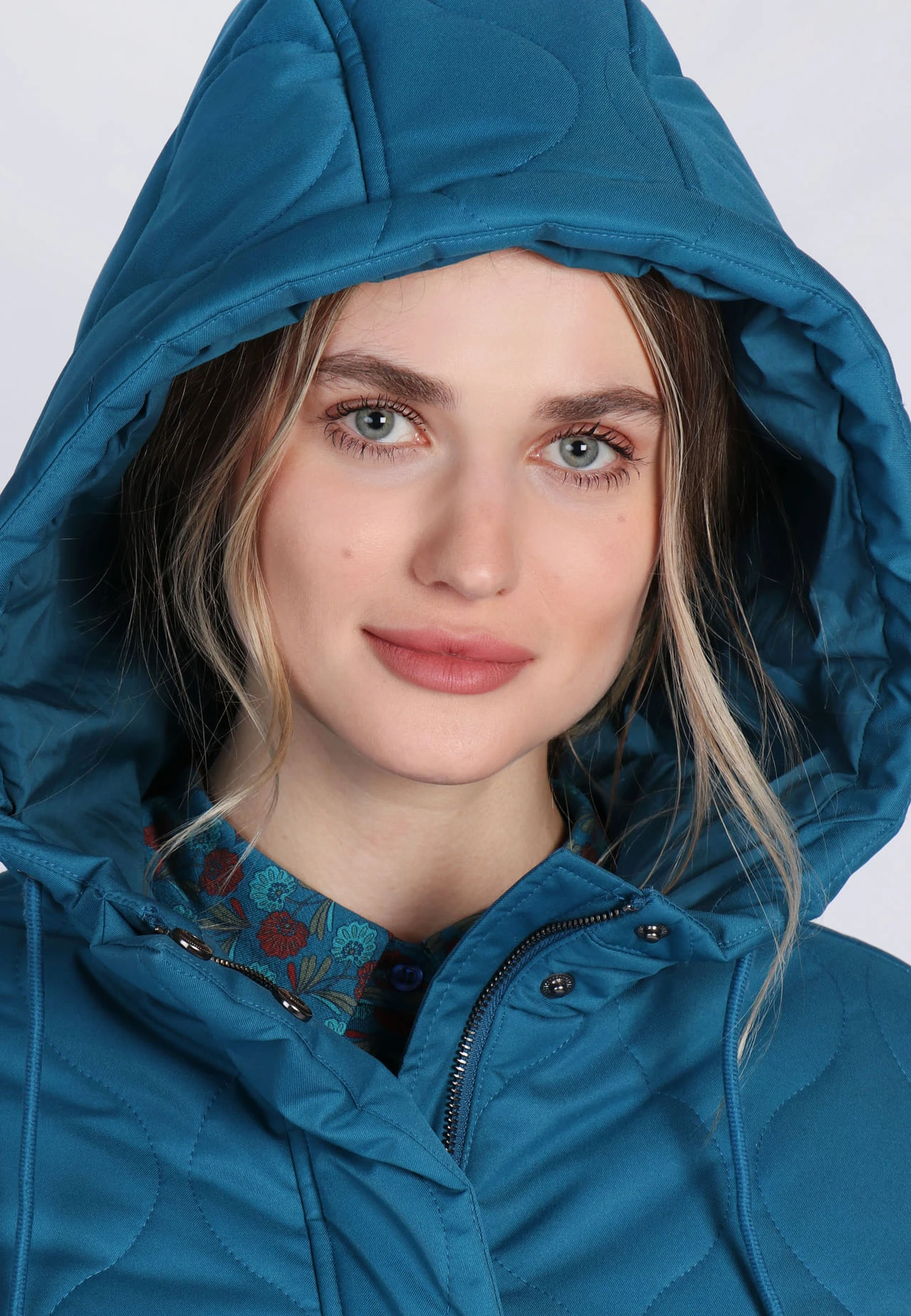 Dieser lange Steppmantel wird aus recyceltem Polyester hergestellt. Er ist perfekt für die nass-kalten Tage, denn er ist wasserabweisend bis 3000mm Wassersäule. Der exklusiven Farben bringen Farbe in die graue Jahreszeit. Durch die wellenförmige Steppung ist er ein echtes modisches Highlight.