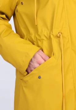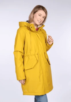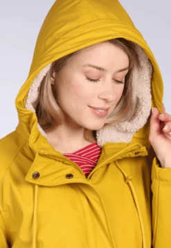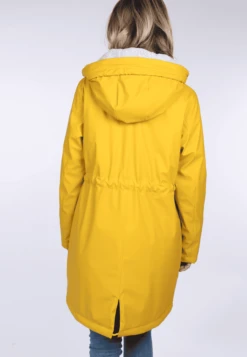 Inspiriert vom klassichen Friesennerz kommt unser Mantel Solliea daher. Gefüttert mit kuscheligem Teddyfleece hält er mit einer Wassersäule von 5.000mm auch bei einer steifen Briese warm und trocken. Der Kordelzug in der Taille garantiert bei jeden Wetter eine gute Figur.