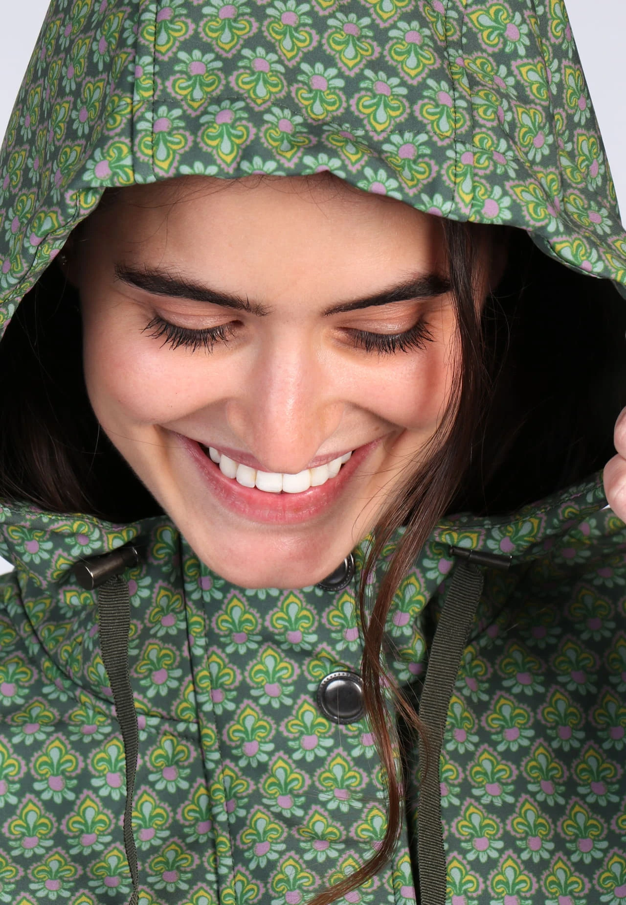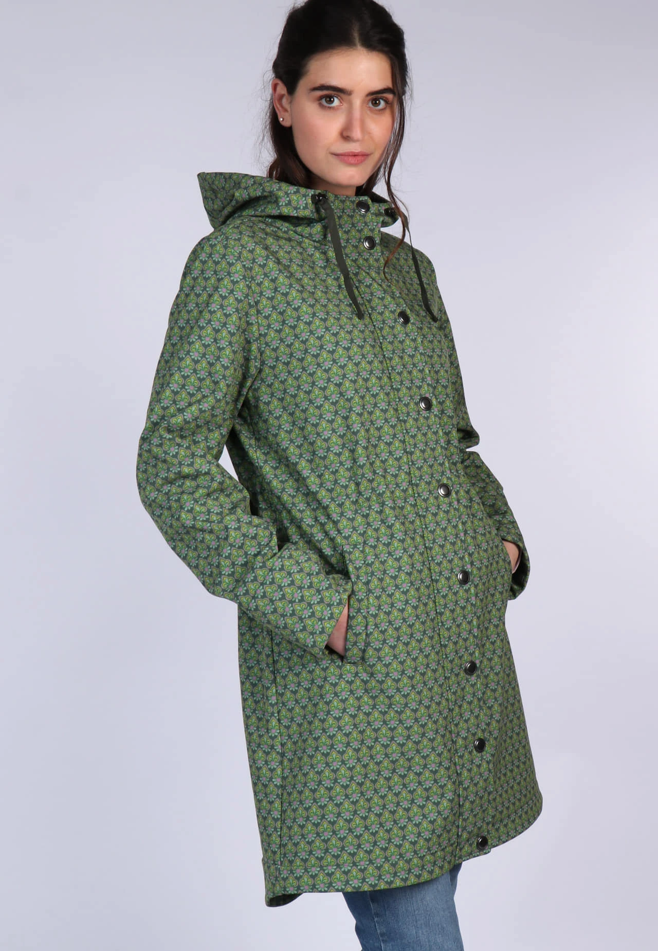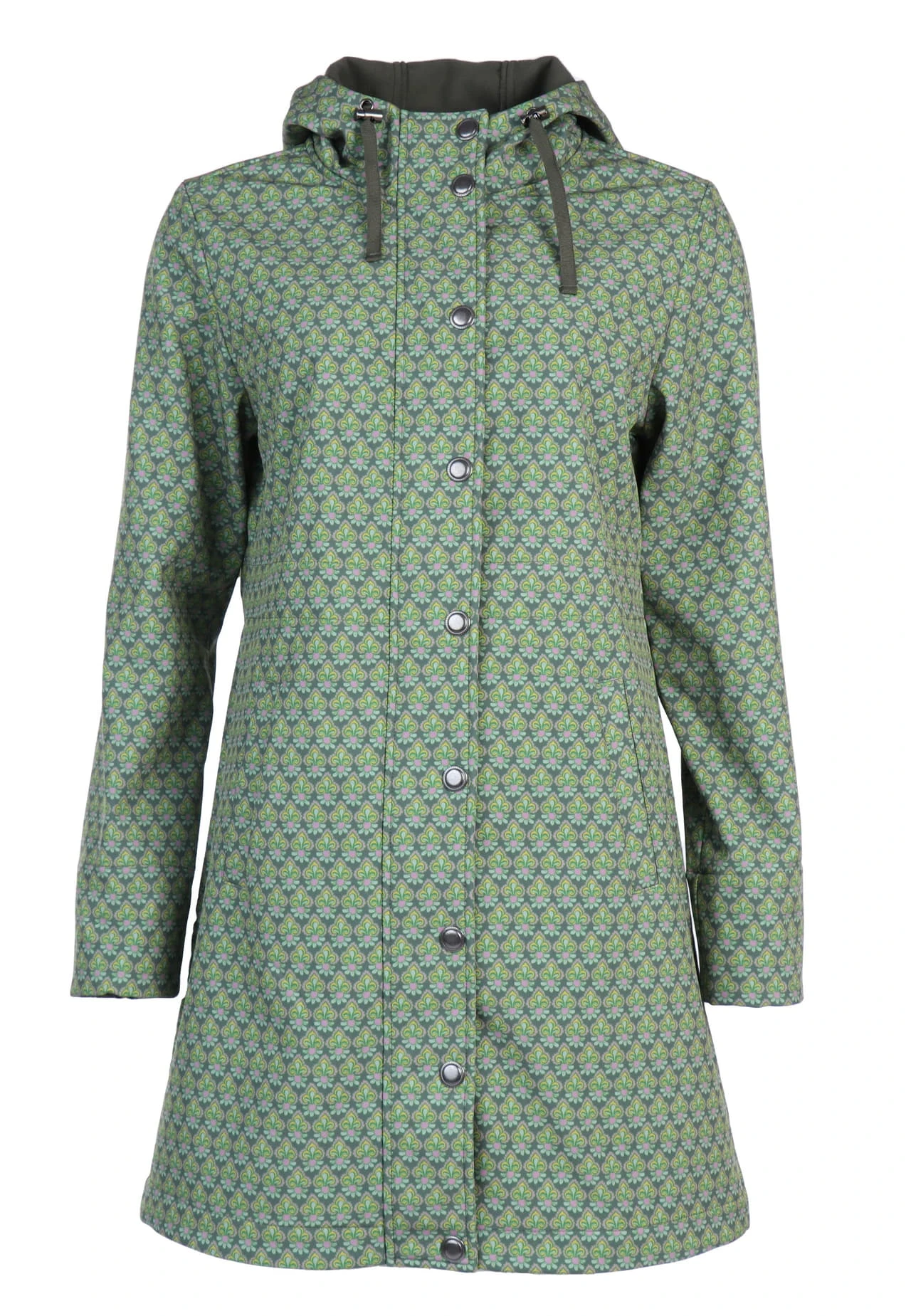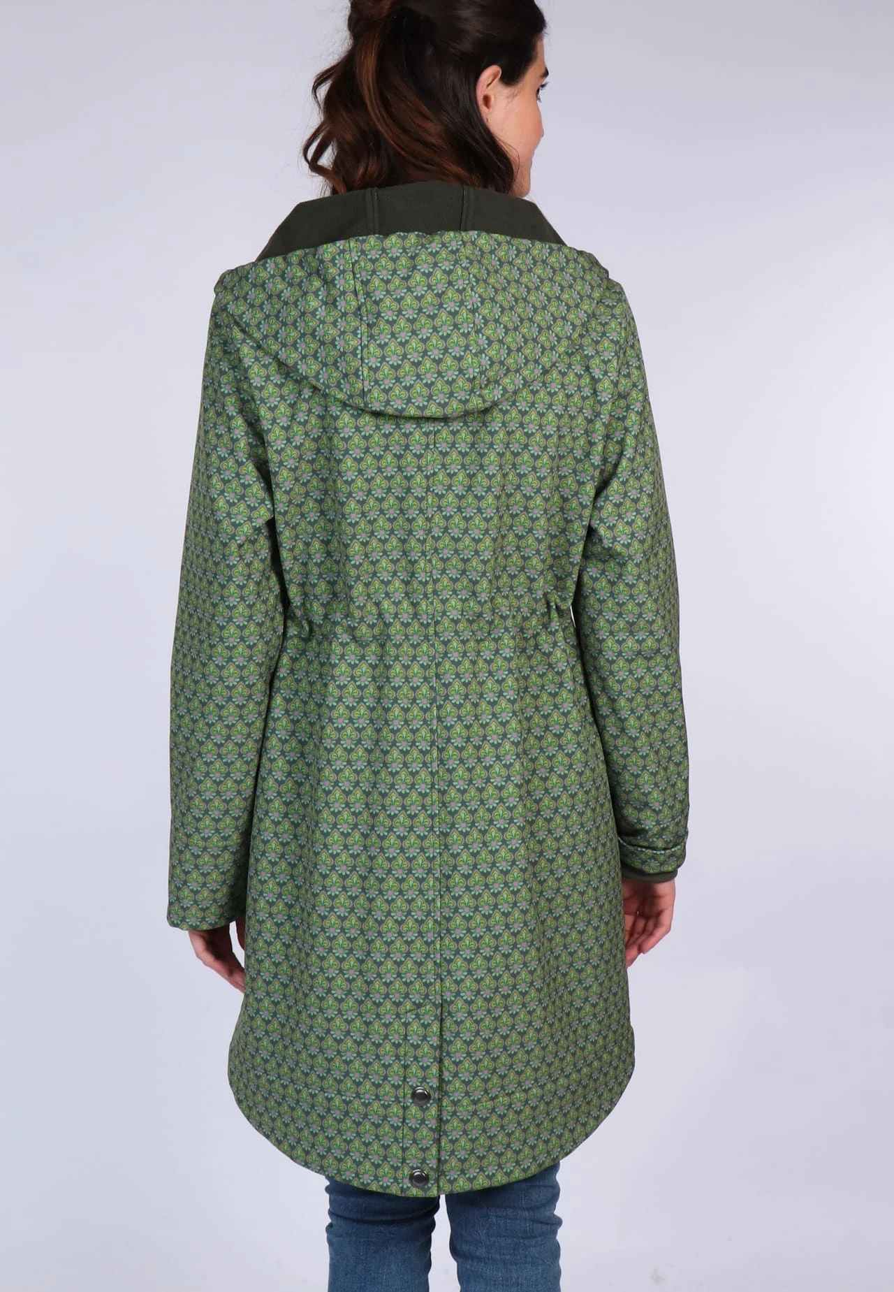 Gesamtlänge bei Größe M 89cm. Dieser Softshellmantel ist der perfekte Begleiter für die nass-kalten Tage, denn er ist wasserabweisend bis 3000mm Wassersäule. Der exklusive florale Druck bringt Farbe in die graue Jahreszeit. Durch den Tunnelzug in der Taille lässt sich die Taillenweite individuell regulieren.