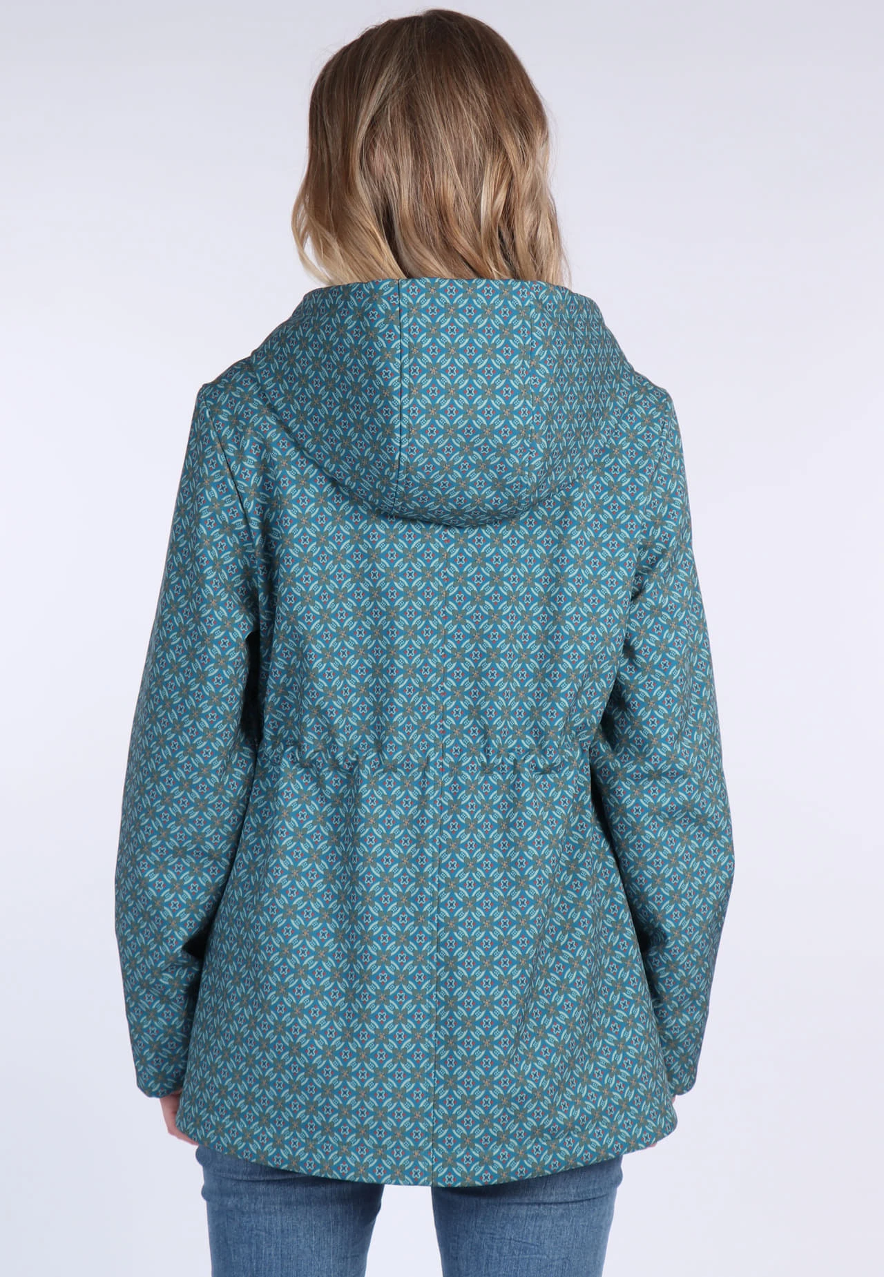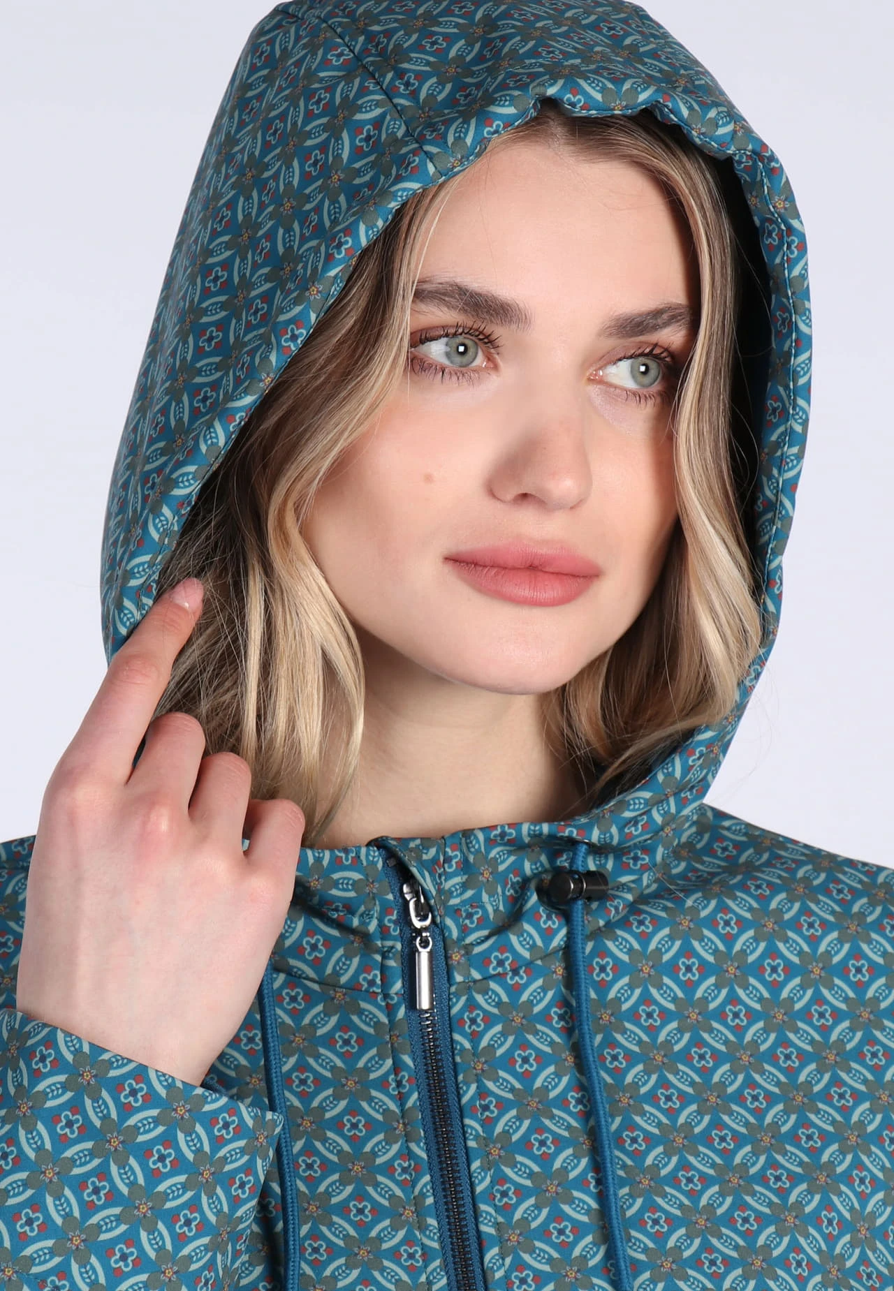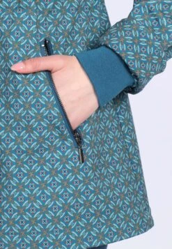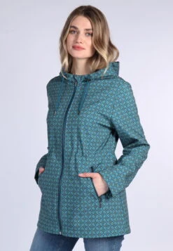 Diese Kurze Softshelljacke wird aus recyceltem Polyester hergestellt. Sie ist perfekt für die nass-kalten Tage, sie ist wasserabweisend bis 3000mm Wassersäule. Der exklusive Druck bringt Farbe in die graue Jahreszeit. Durch den versteckten Tunnelzug in der Taille lässt sich die Taillenweite individuell regulieren.