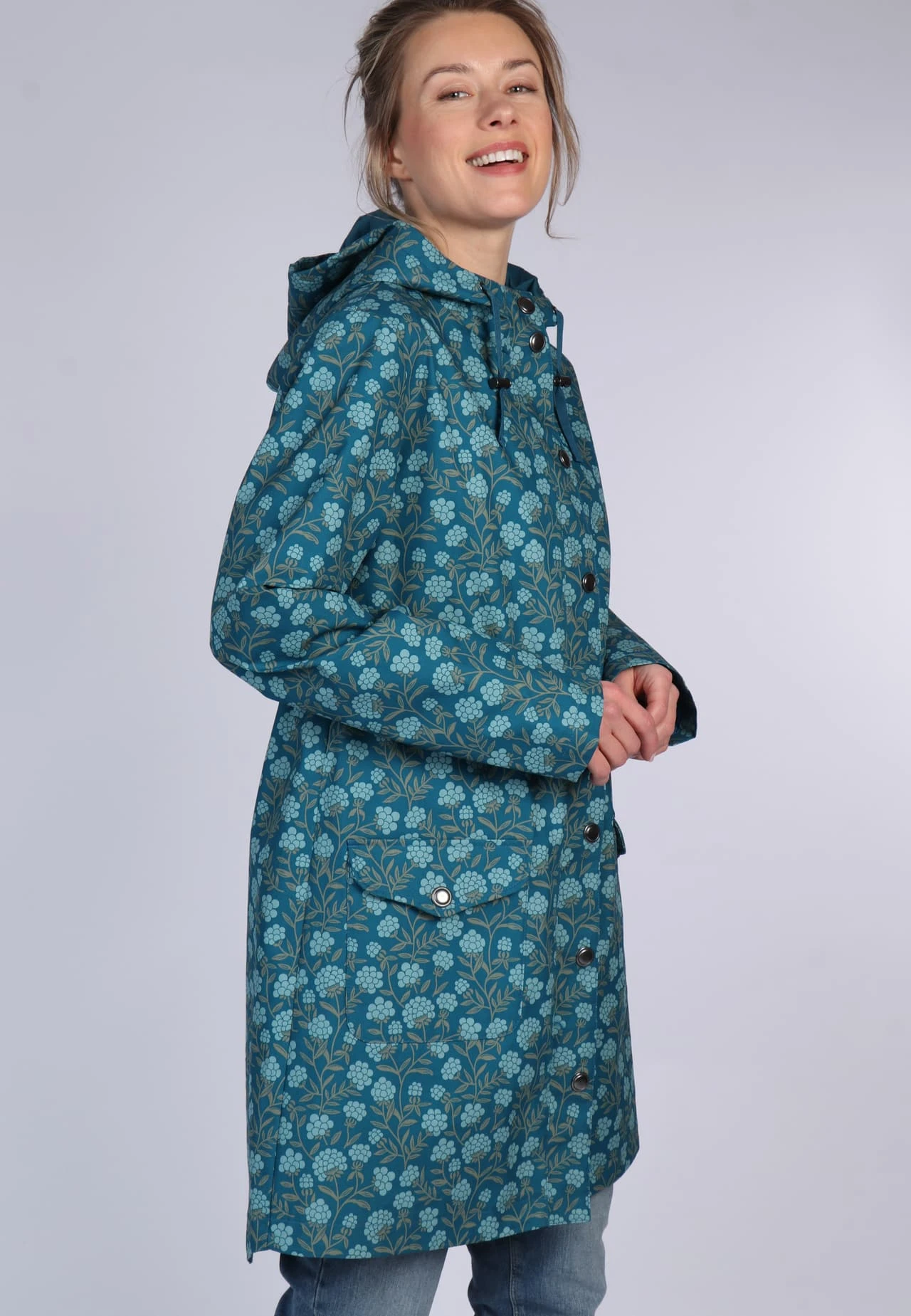 Gesamtlänge bei Größe M 89cm. Ina ist mit ihrem dezentem Muster der perfekte Begleiter bei nasskaltem Wetter. Dieser Mantel ist wasserabweisend bis 3000mm Wassersäule. Das Baumwollmischgewebe verleiht ein angenehmes Tragegefühl. Durch den versteckten Tunnelzug in der Taille lässt sich die Taillenweite individuell regulieren. Die dekorative Passe am Rücken macht den Mantel zu einem echten Hingucker.