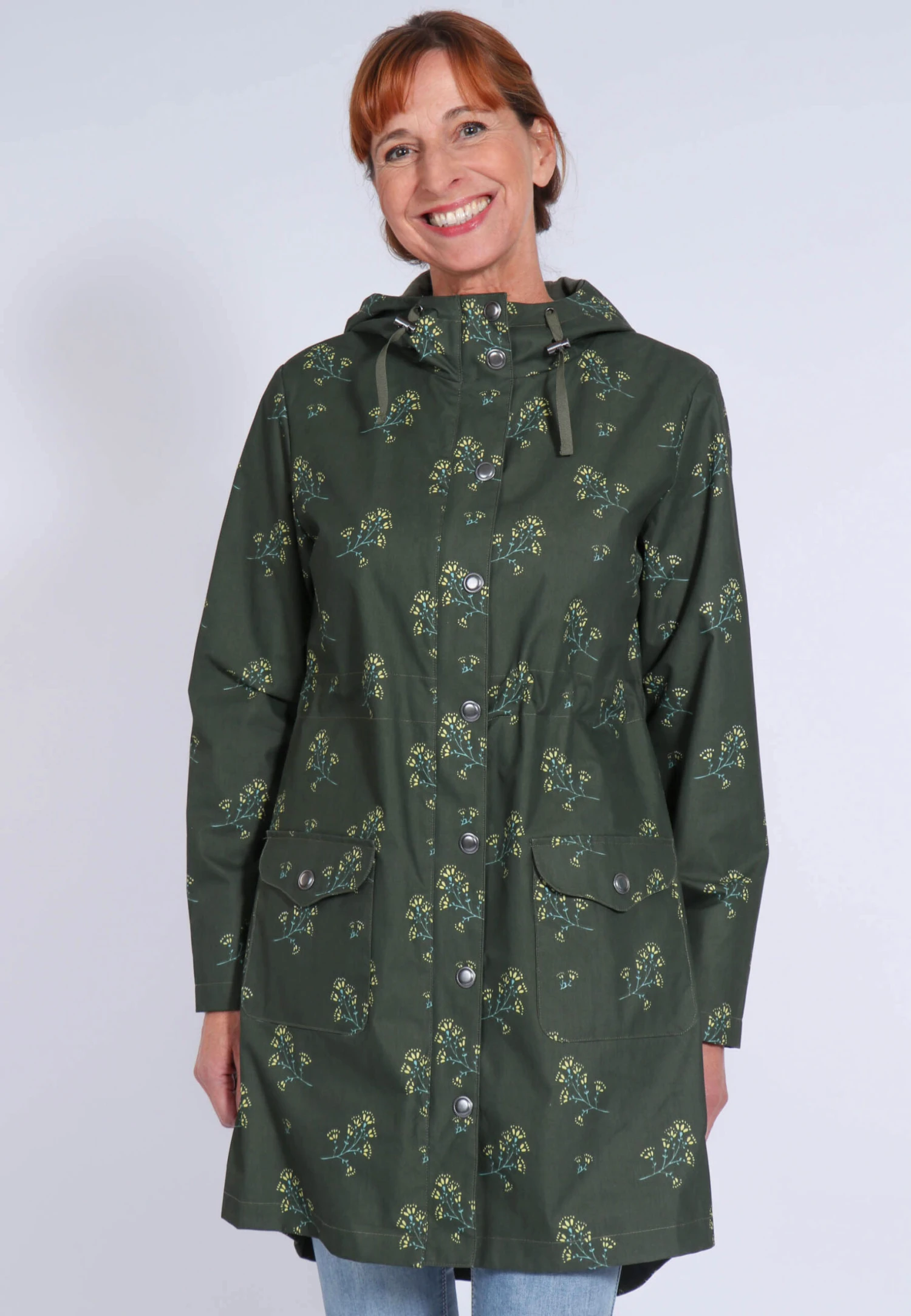 Ina ist mit ihrem dezentem Muster der perfekte Begleiter bei nasskaltem Wetter. Dieser Mantel ist wasserabweisend bis 3000mm Wassersäule. Das Baumwollmischgewebe verleiht ein nagenehmes Tragegefühl. Durch den versteckten Tunnelzug in der Taille lässt sich die Taillenweite individuell regulieren. Die dekorative Passe am Rücken macht den Mantel zu einem echten Hingucker.