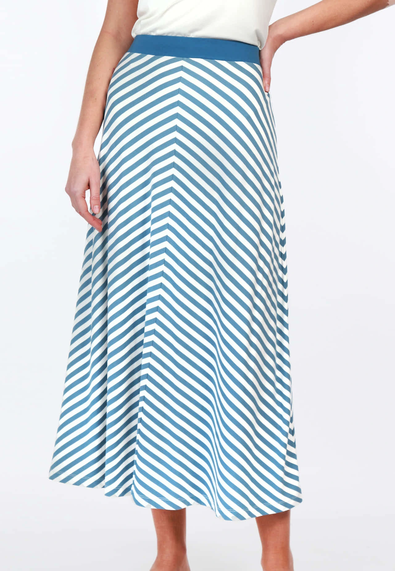 Gesamtlänge in Größe 86 cm (M). Dieser Rock ist ein wahrer Blickfang. Die raffinierte Streifenanordnung schmeichelt jeder Silhouette, während die erstklassige Jerseyqualität ein Höchstmaß an Tragekomfort verspricht.