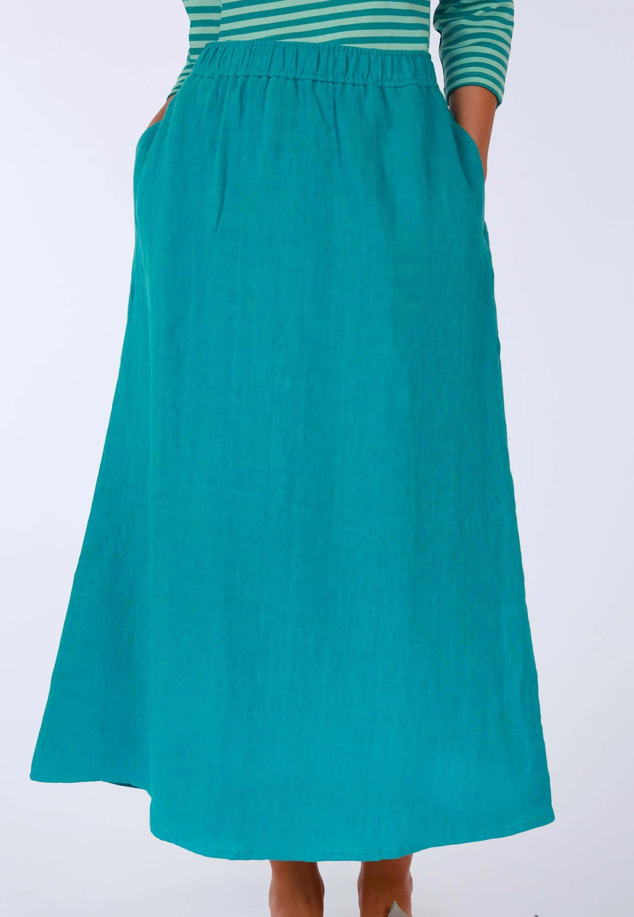 Komfortable und feminin ist unser Leinenrock SALOME. Er zaubert eine wunderbar weibliche Silhouette und hat eine angenehme Passform. Praktisch sind die Eingriffstaschen, die Platz für Handy & Co schaffen.