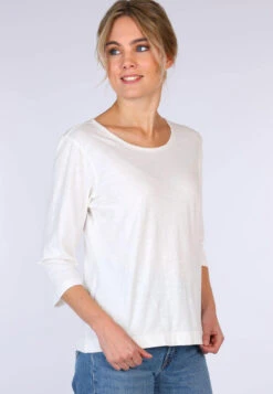 Länge 63cm (M). Schönes Shirt mit 3/4 Arm und dekorativer Stickerei am Rundhalsausschnitt. Die Qualität aus 100% Baumwolle ist pflegeleicht und sehr angenehm zu tragen.
