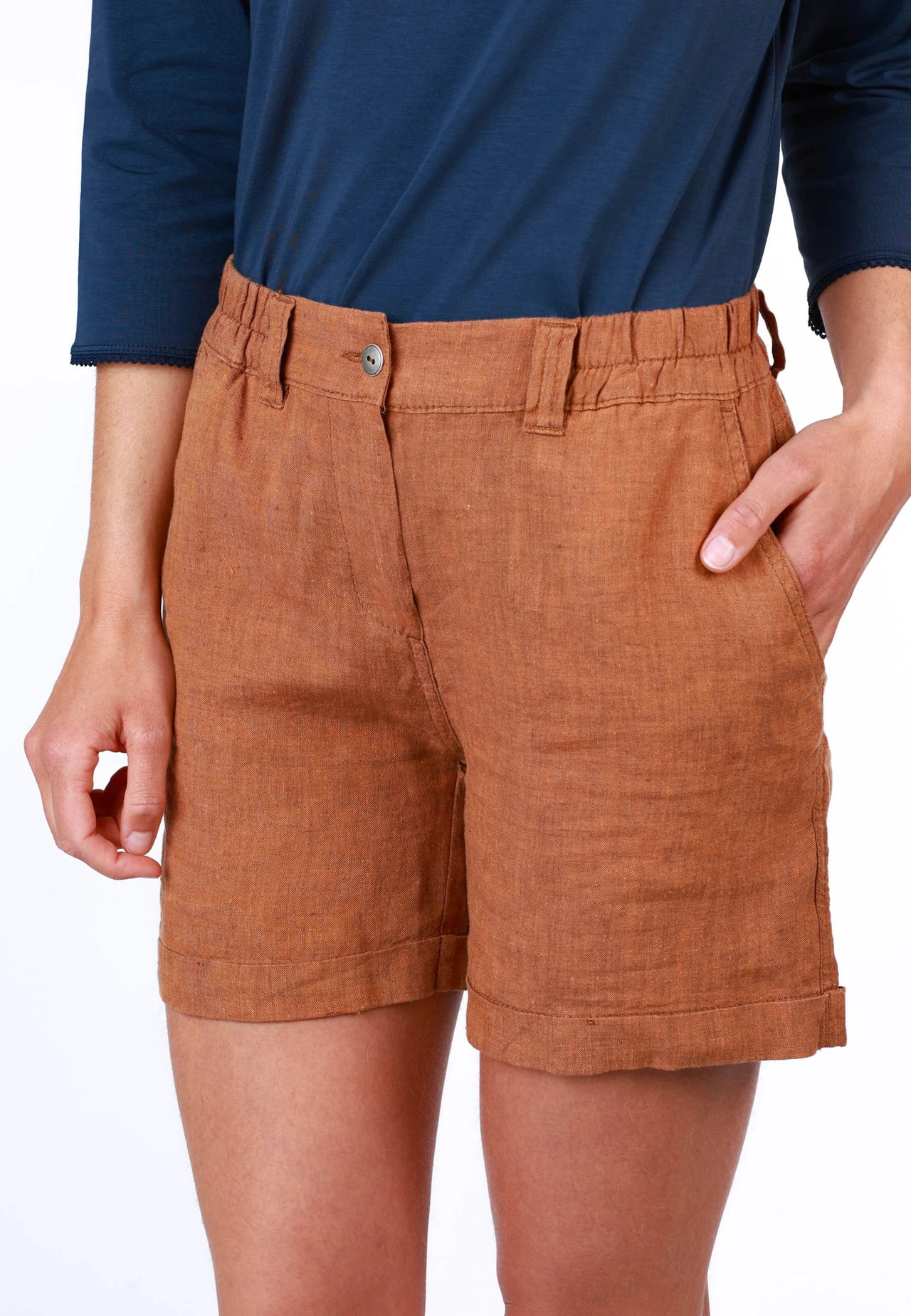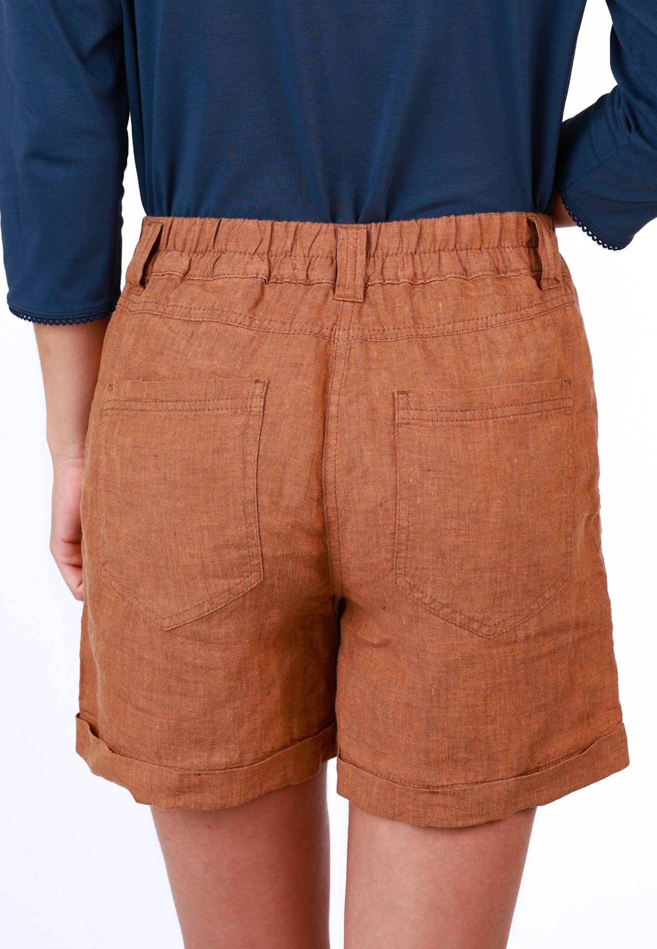 Lässige Leinenshorts mit Knopf, Gürtelschlaufen und seitlichen Eingrifftaschen. Das Material verspricht ein super angenehmes Tragegefühl, einen perfekten Sitz und Formbeständigkeit für jeden Tag. Bequem und vielseitig zu kombinieren macht es Feliene zum idealen Style für jede Gelegenheit und zum unverzichtbaren Begleiter für diesen Sommer.