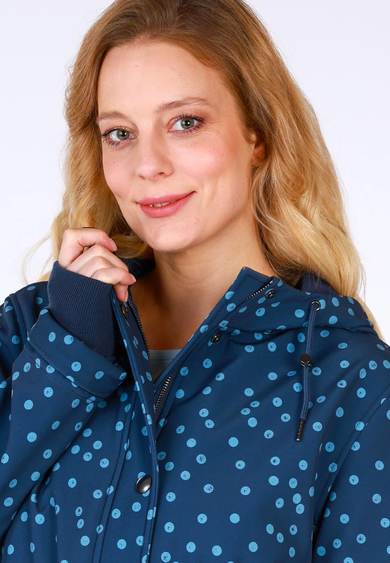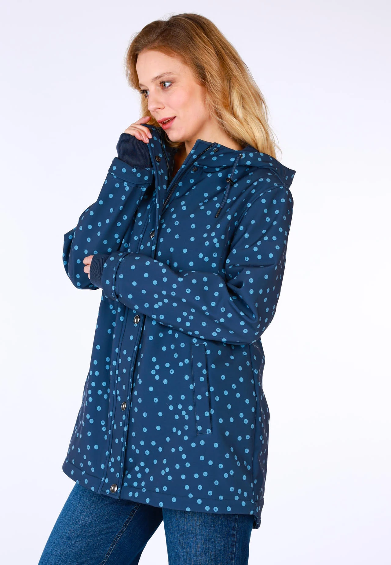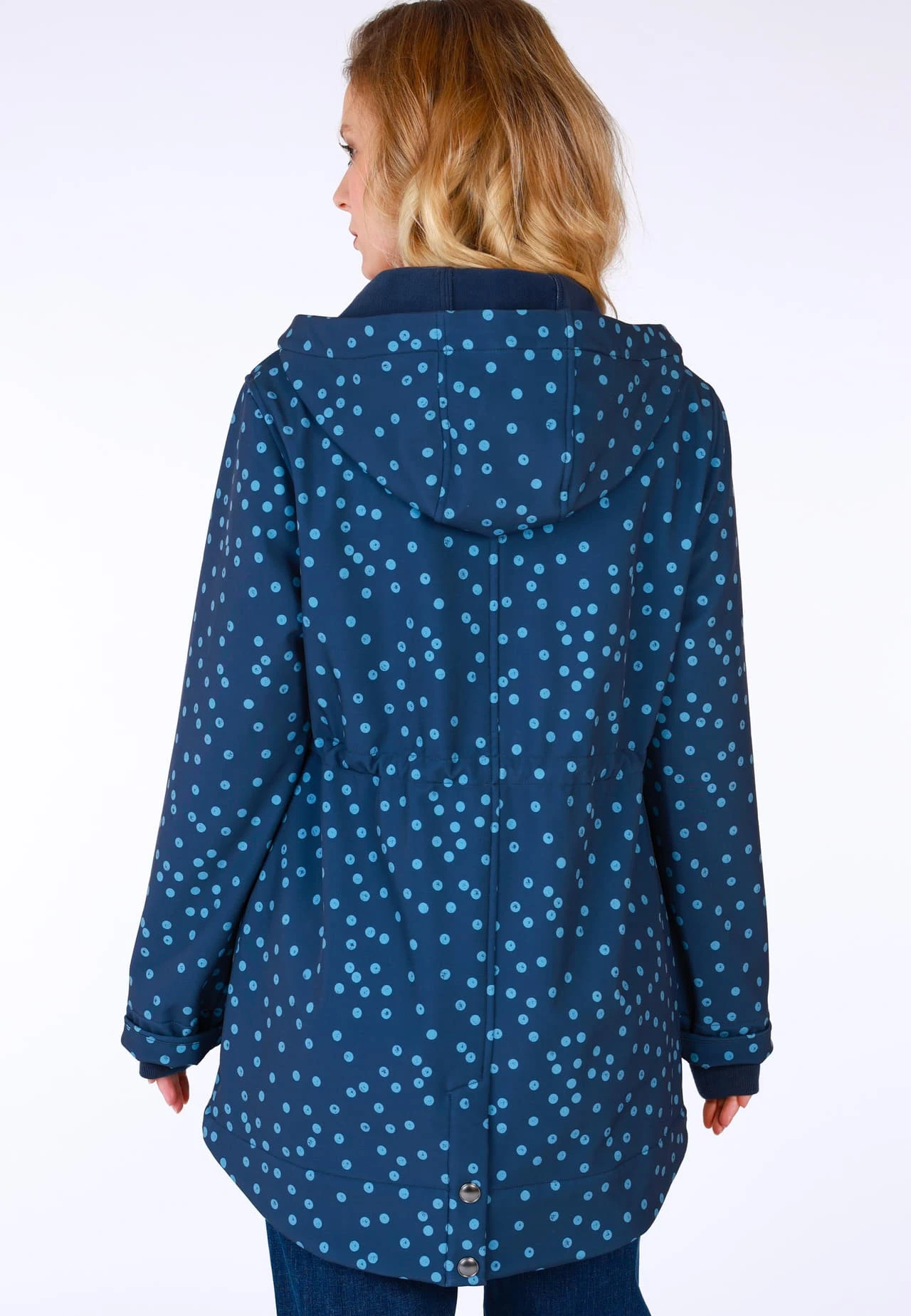 Länge 81cm (M). Klassisch-romantisch und dabei wasserabweisend ist unsere Softshelljacke Eika. An der Taille justierbar und mit einem kuschelig weichem Innenfleece ausgestattet bietet sie optimalen Schutz bei Wind und Regen. Der perfekte Begleiter für alle Frauen, die auch bei schlechtem Wetter nicht auf bunte Farben und einzigartiges Design verzichten wollen. Wasserabweisend bis 3000mm Wassersäule.