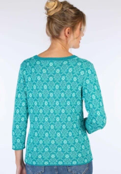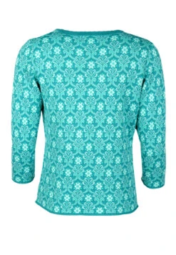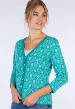 Länge 56 cm (M). Diese Strickjacke mit V-Ausschnitt, haben wir diesesmal mit einem typisch skandinavischem Jacquard-Muster gestaltet. Die weiche Bio-Baumwolle ist sehr angenehm zu tragen und veredelt diesen zauberhaften Cardigan.