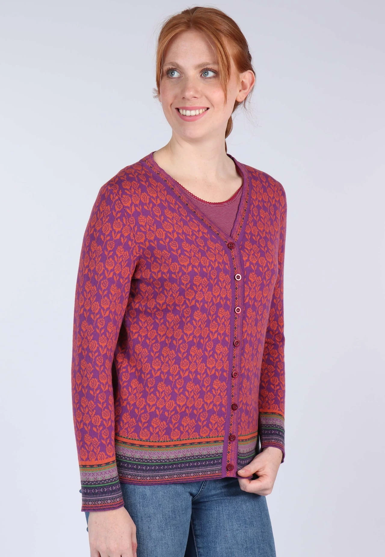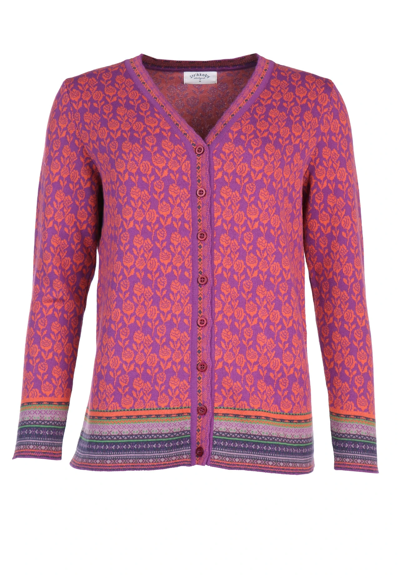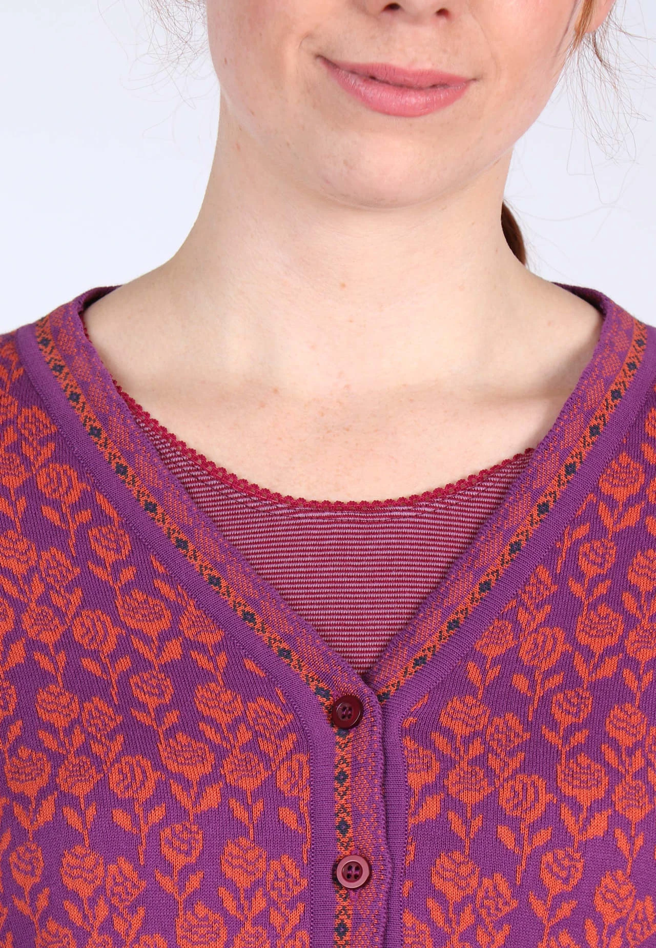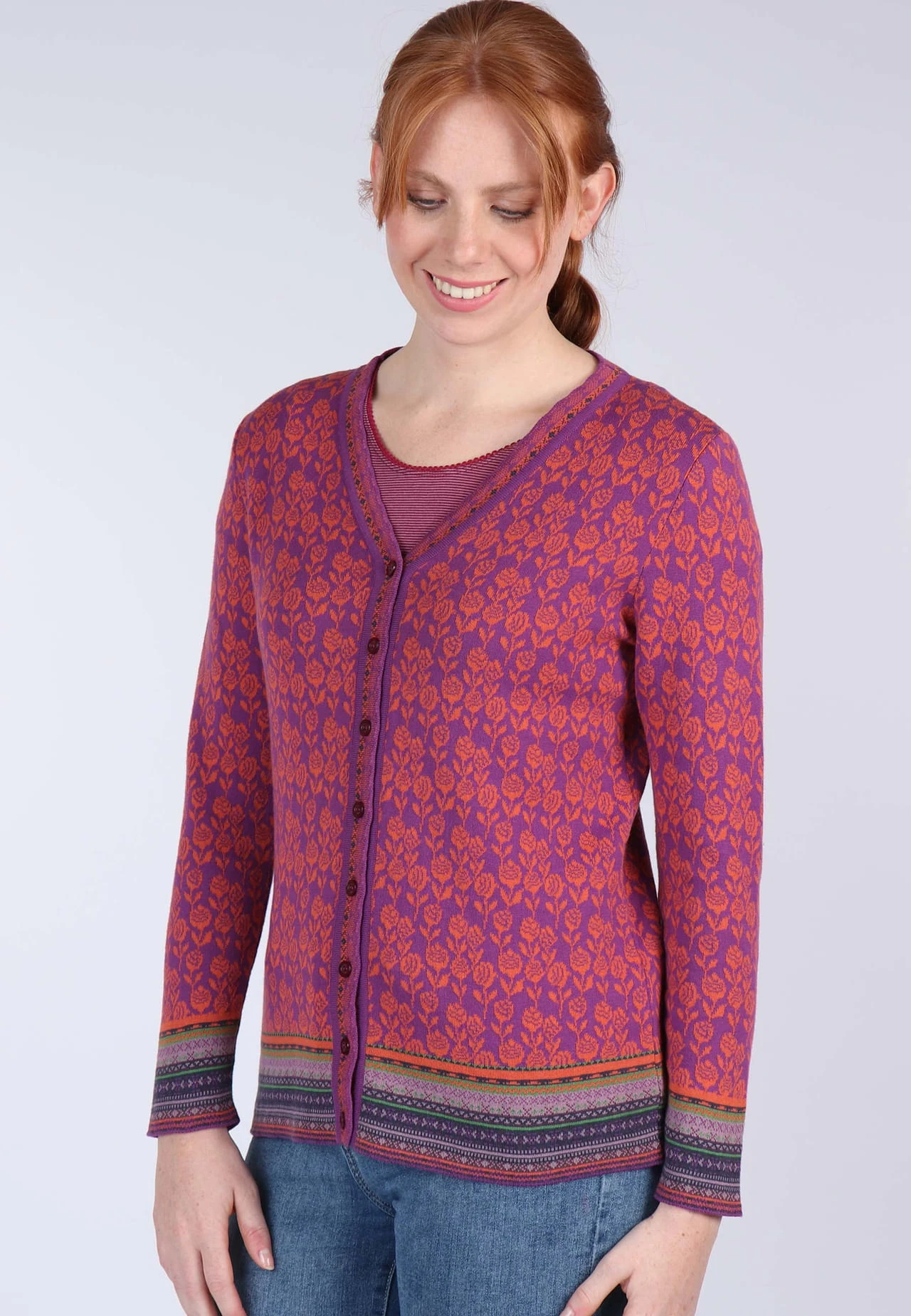 Länge bei Gr. M 65cm. Romantisch-feminin ist diese V-Neck Strickjacke mit aufwendigem Jacquard-Muster. Das wunderschöne florale Muster im Fair Isle-Mix machen CHRISTI rose zu einem echten Lieblingsstück. Zusätzlich sorgt die wunderbar softe Qualität aus organic Cotton für einen angenehmen Tragekomfort.