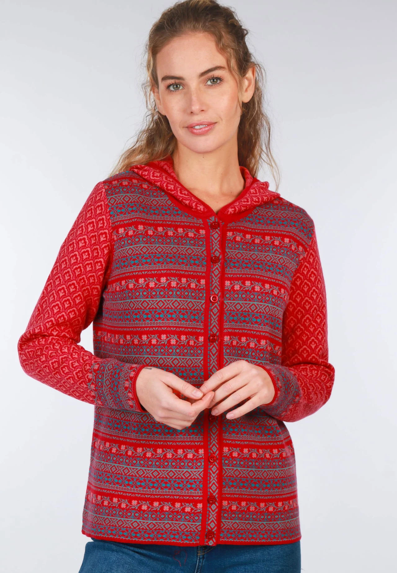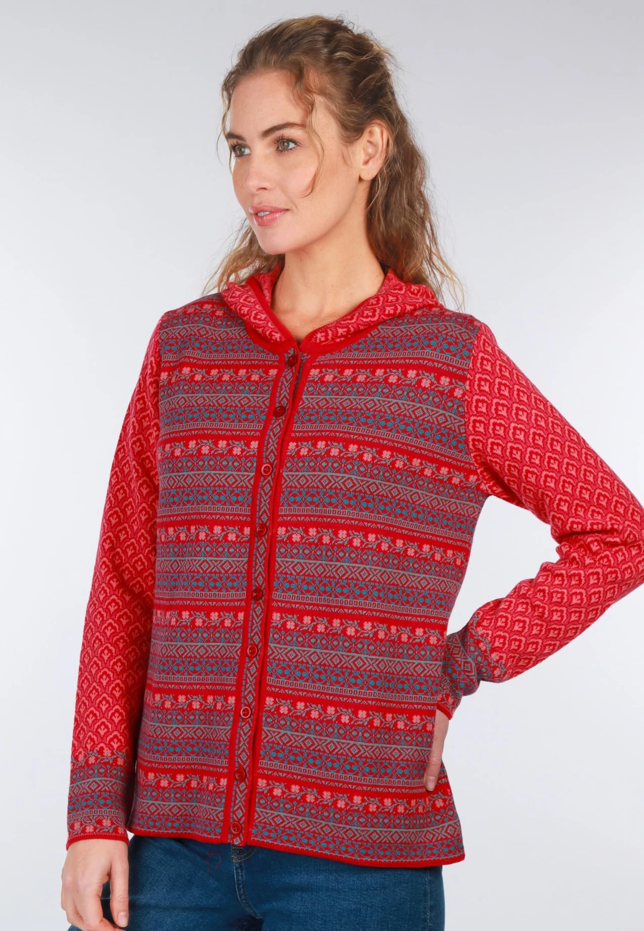Länge 62cm (M). Hüllen Sie sich in unsere Kapuzenstrickjacke FREYA TULIP und erleben Sie das perfekte Zusammenspiel von Komfort, Design und Nachhaltigkeit. Das florale Jacquardmuster macht diese Jacke unverwechselbar und ist ein Must-Have für Modebegeisterte. Der klassisch sportive Schnitt macht diesen Cardigan zu einem echten Allrounder. Hergestellt aus 100% Organic Cotton ist FREYA nicht nur angenehm zu tragen, sondern auch umweltfreundlich produziert.