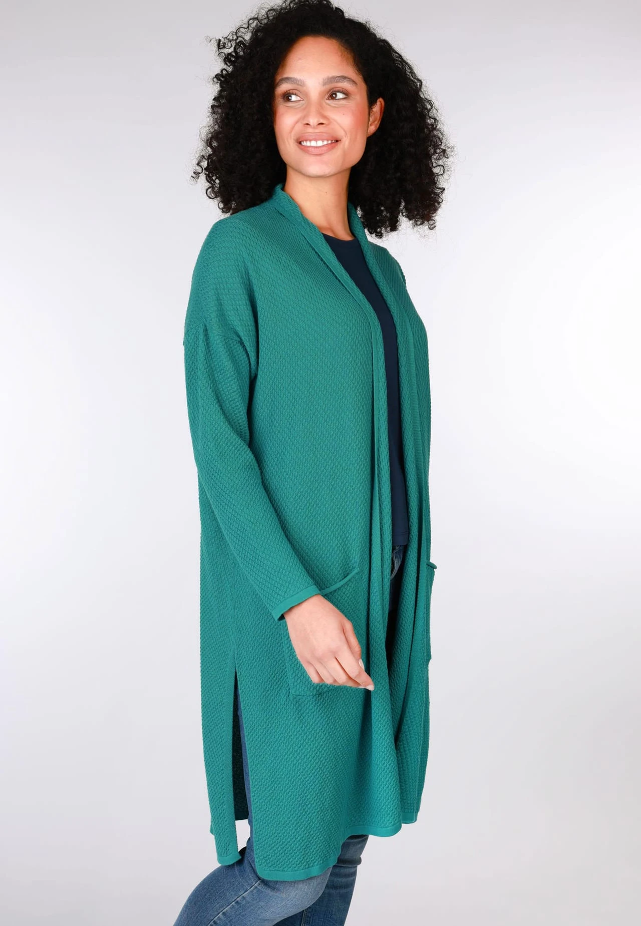 Länge 97 cm (M). Unser einfarbiger Strickmantel ILKA kommt mit einem schönen Strukturmuster und lässigem Schnitt. Er ist ein toller Begleiter für jeden Tag. Aus 100% Bio-Baumwolle gefertigt sorgt er zusätzlich für einen angenehmen Tragekomfort.
