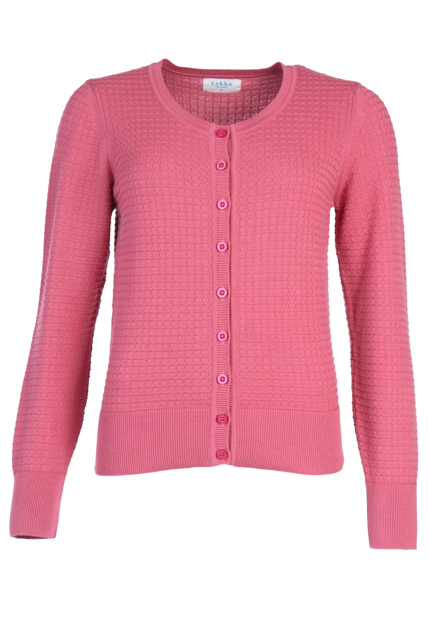 Gesamtlänge 56 cm bei Größe M. Klassisch und feminin kommt unsere Rundhals-Strickjacke Manon. Besonderheit ist das delikate Strickmuster im Retro-Stil und die breiten Bündchen. Die Bio-Baumwolle bietet zusätzlich einen hohen Tragekomfort und macht sie zu einem tollen Alltagsbegleiter.