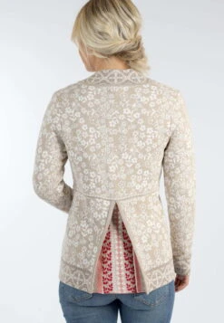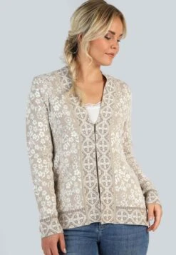Länge 62 cm (M). Unsere Strickjacke MY kommt mit floralem Muster und einem femininem Schnitt. Ein zusätzlicher Blickfang sind die farblich abgesetzten Kanten sowie die Kellerfalte im Rücken. Erstklassige Verarbeitung und hochwertige Materialien sorgen für einen angenehmen Tragekomfort.