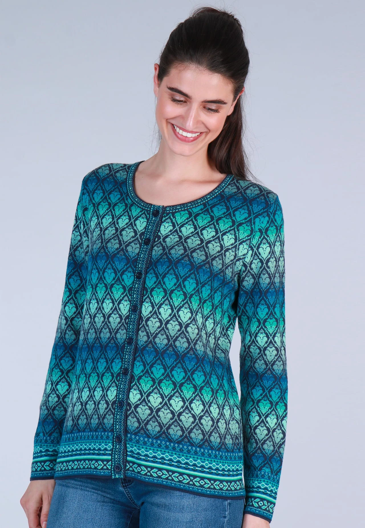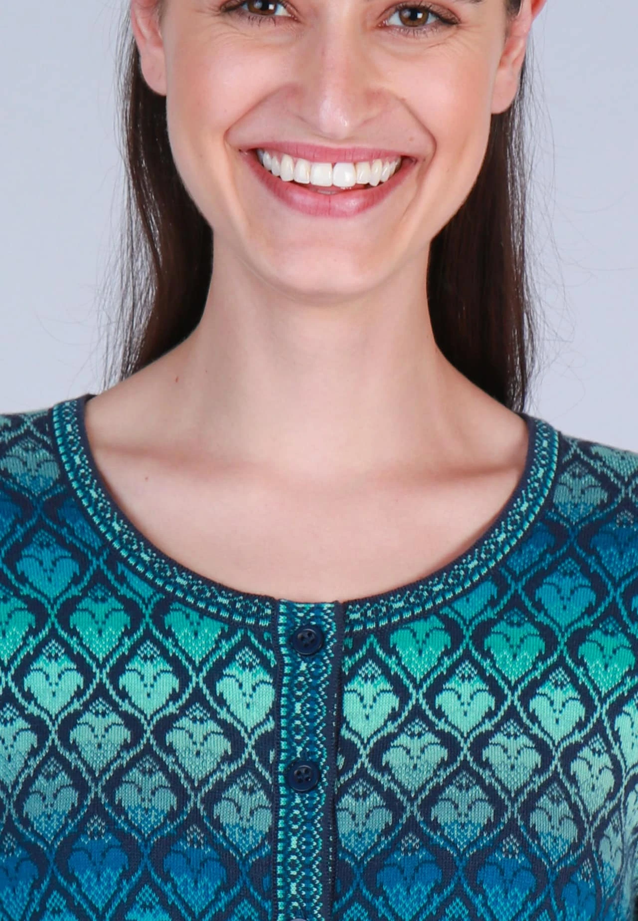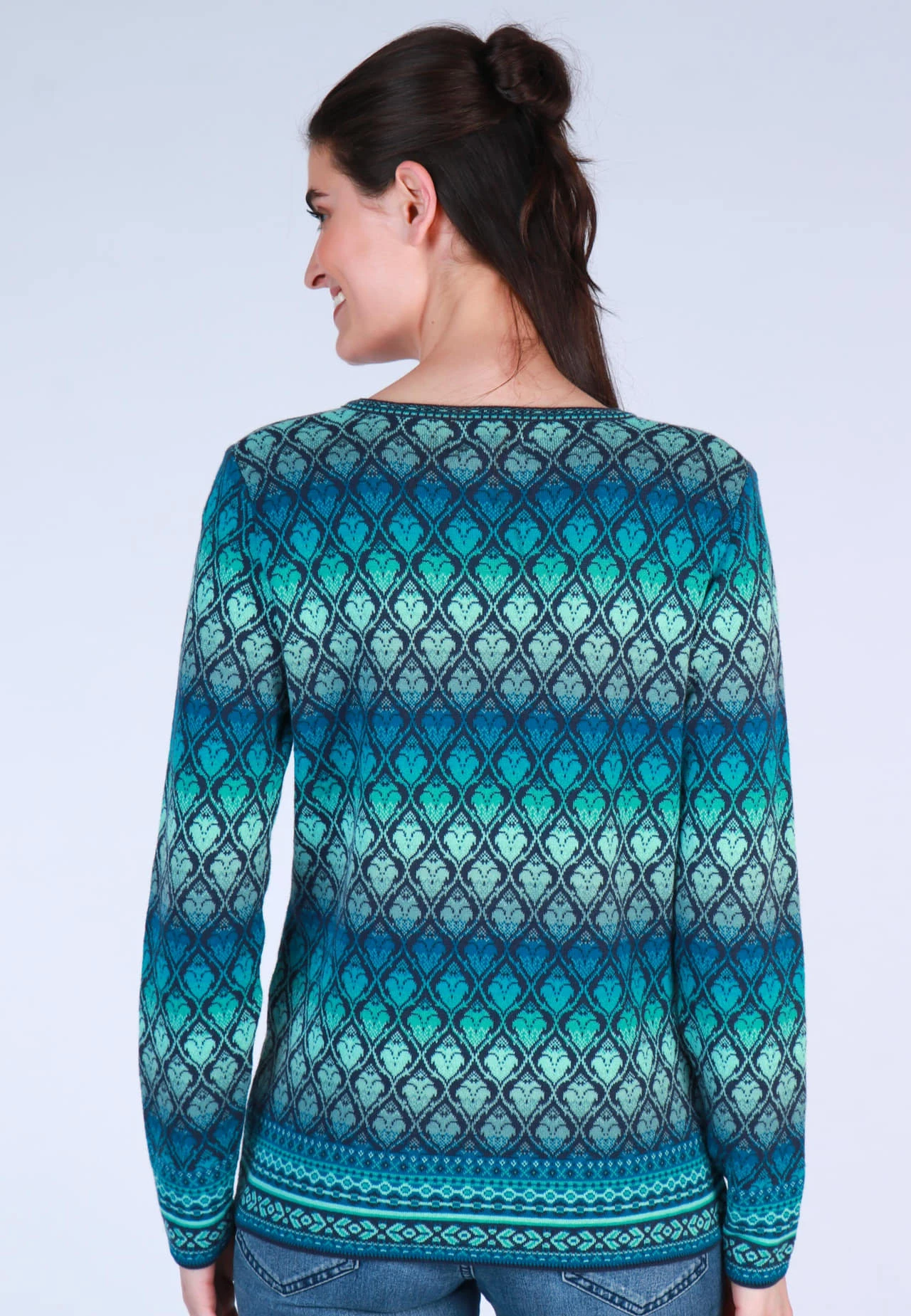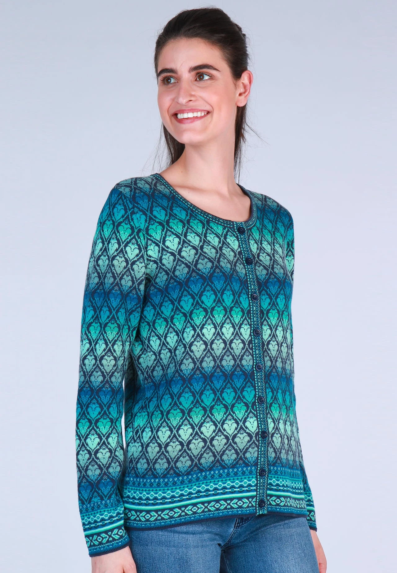 Länge 62cm (M). Möchten Sie Ihren Kleiderschrank um eine stilvolle und umweltbewusste Strickjacke erweitern? Dann haben wir genau das Richtige für Sie! Unsere Rundhals-Strickjacke RENEÉ RAINBOW mit aufwändigem Strickmuster besteht aus 100% Organic Cotton. Das einzigartige Jaquardmuster gibt der Jacke einen modernen Look und lässt Sie in jeder Situation gut aussehen. Durch die hochwertige Verarbeitung und die natürliche Robustheit des Materials haben Sie zudem eine Jacke, die Sie bequem und langfristig tragen können. Ob zu Jeans und Sneakern oder zu einer Hose für einen coolen Office-Look – diese Strickjacke ist ein echter Hingucker. Und das Beste daran ist, dass Sie mit dem Kauf auch noch etwas Gutes für die Umwelt tun. Eine tolle Kombination aus Stil und Nachhaltigkeit.