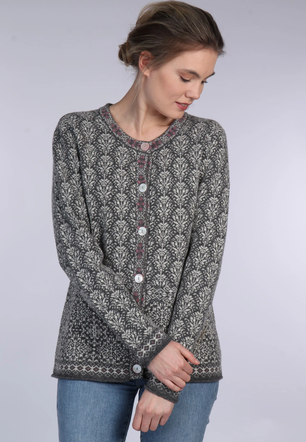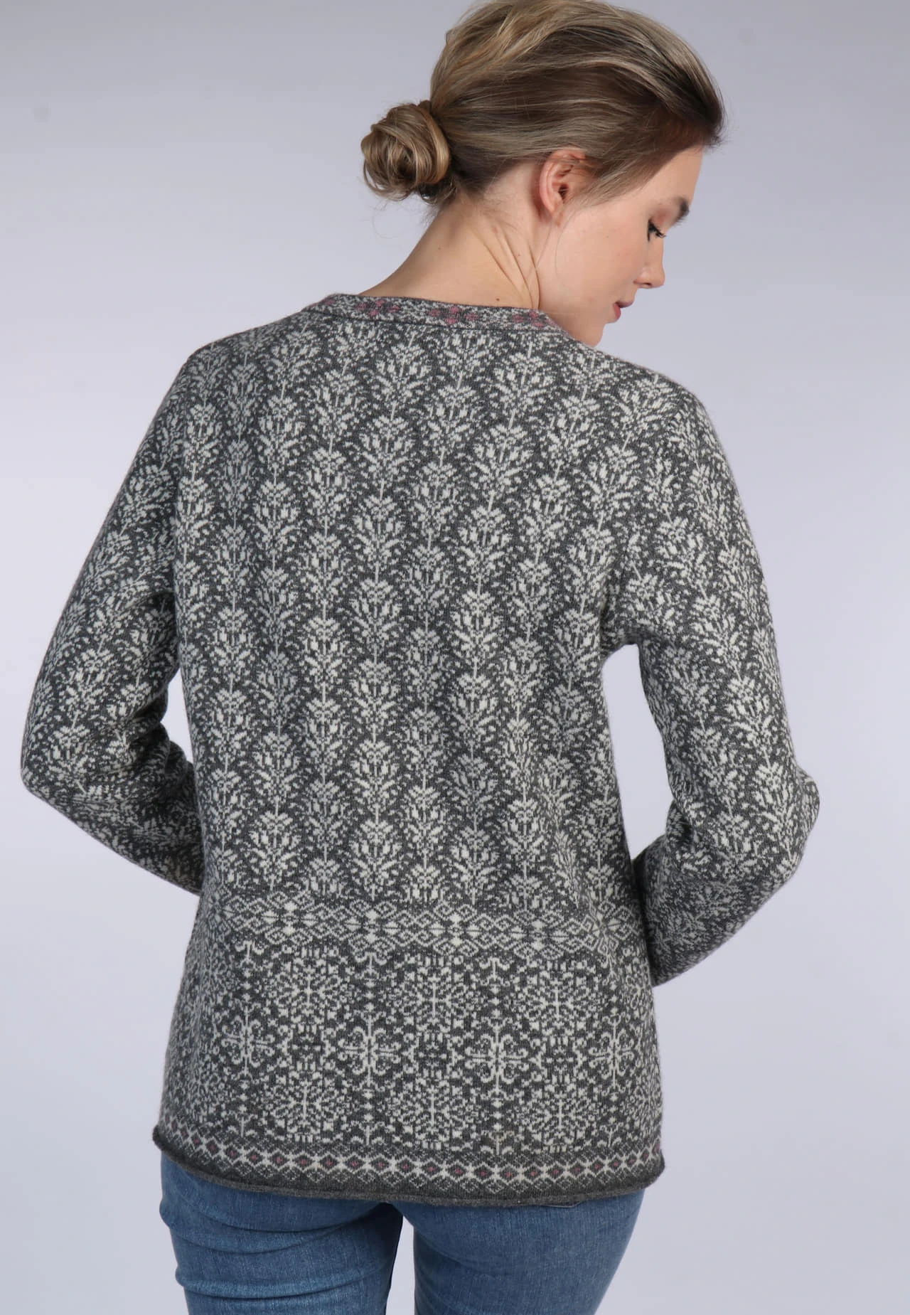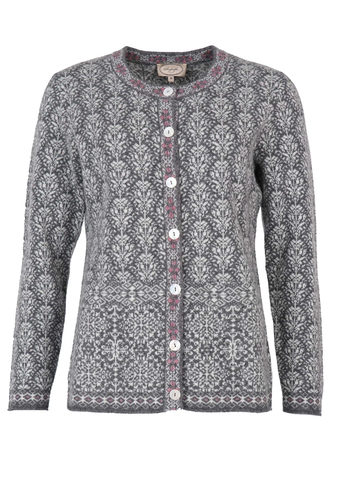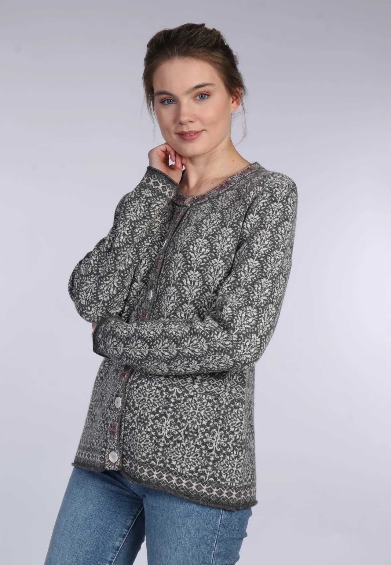 Gesamtlänge 66 cm bei Größe M. Kuschelig warm und weich durch den Winter bringt Sie unser Cardigan Skady. Ein toller Allrounder für jeden Tag. Verschiedene nordische Muster zieren diese Strickjacke und sorgen für eine tolle Optik.