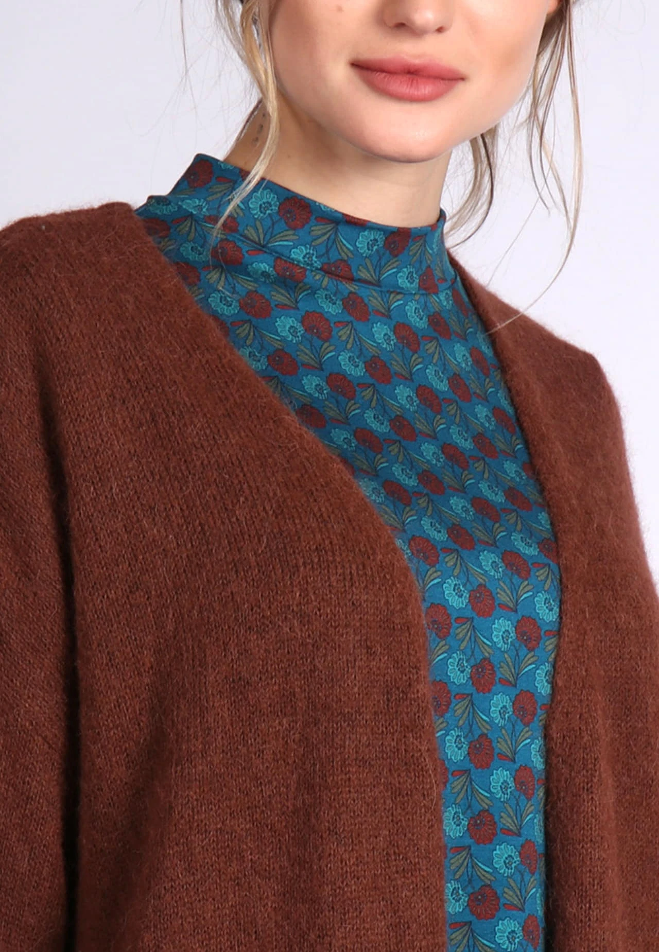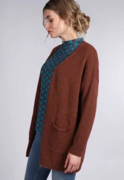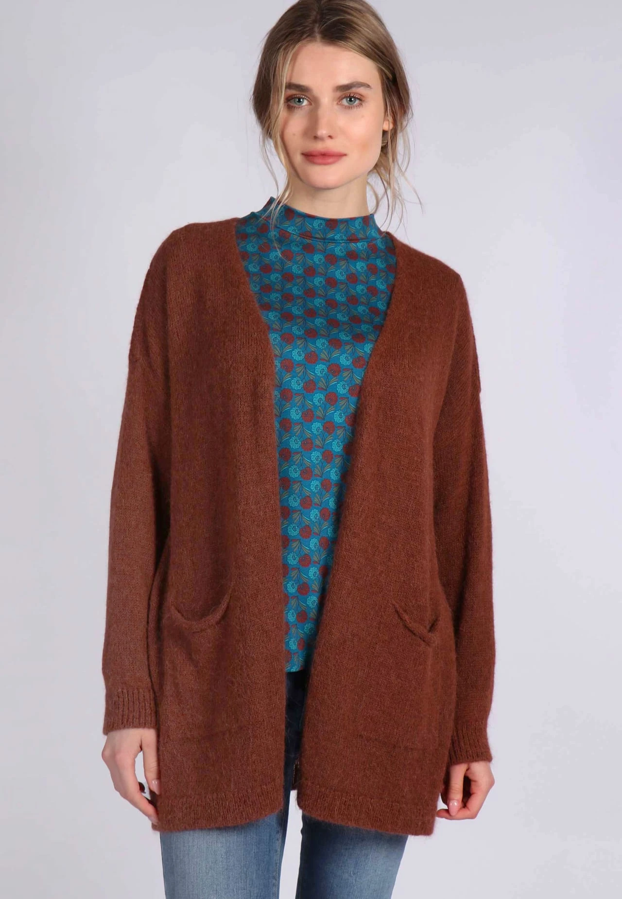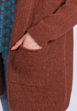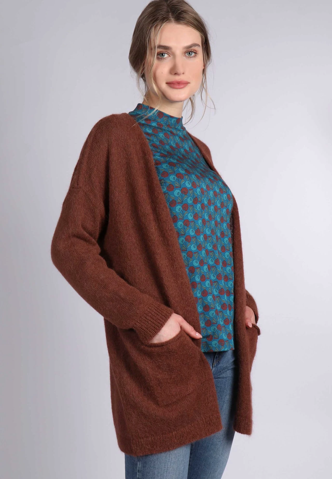 Gesamtlänge 72 cm bei Größe M. Offener Cardigan mit einer modisch-eleganten Silhouette. Diese stylische Hülle ist aus einer besonders soften und nachhaltigen Wollqualität gestrickt. Diese Strickjacke ist vielseitig kombinierbar und ein echtes Lieblingsstück.