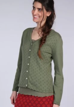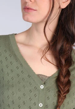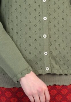 Gesamtlänge 59 cm bei Größe M. Diese Strickjacke mit V-Ausschnitt kombiniert zarte Ajourmuster und ist die perfekte Ergänzung zu Kleidern, Röcken und Jeans. Weiche Baumwolle und erstklassige Verarbeitung machen diesen Cardigan zu einem Lieblingsstück.