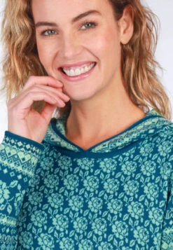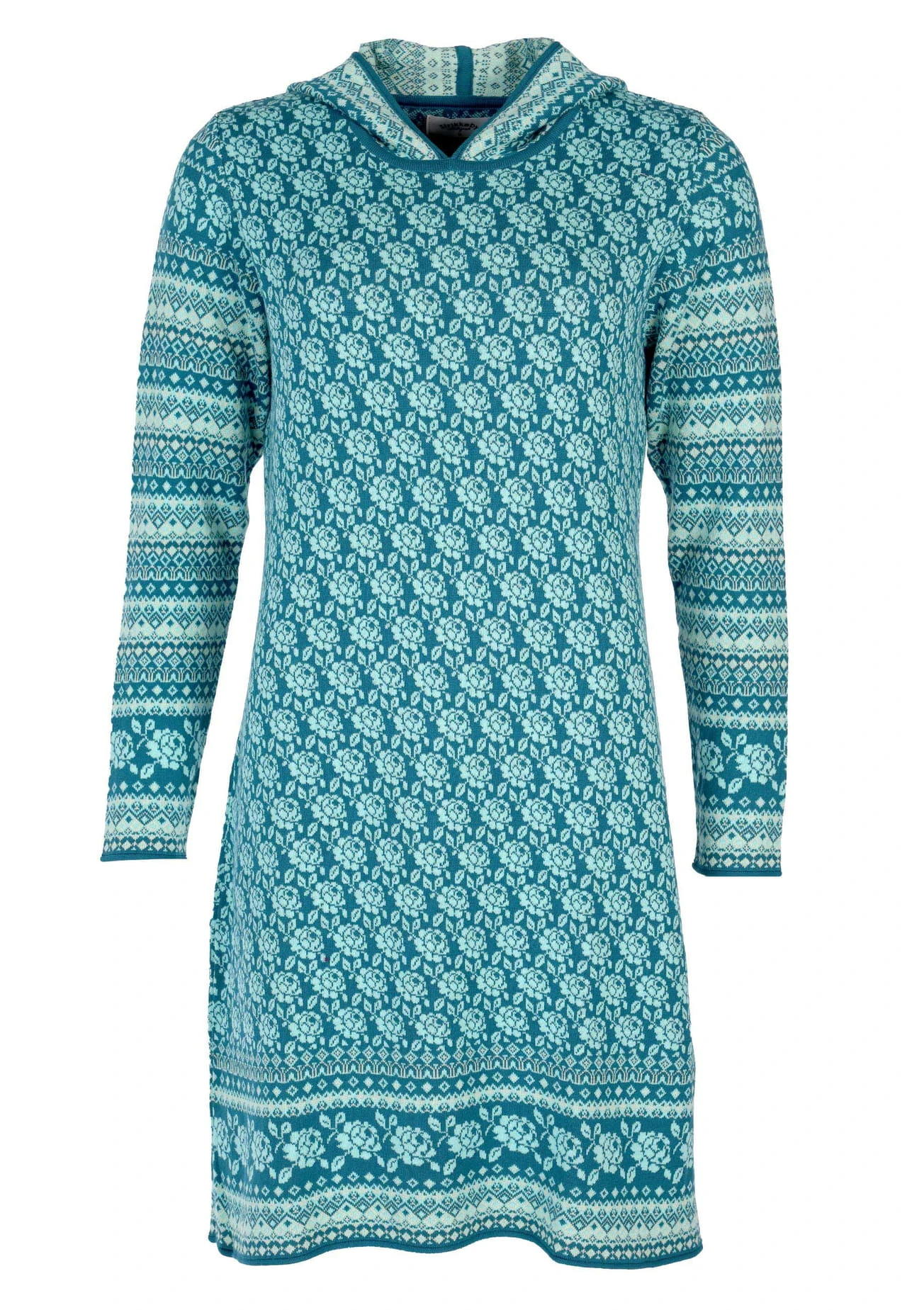 Länge 94cm (M). Gemütliche Eleganz und einzigartiges Design verleihen diesem Kleid einen edlen Touch. Ob für einen entspannten Tag zu Hause oder für einen Abend mit Freunden, dieses Kleid wird Sie begeistern. Hergestellt aus 100% Organic Cotton ist es nicht nur angenehm zu tragen, sondern auch umweltfreundlich produziert. Das aufwändig florale Jacquardmuster gemixt mit dem Fair Isle sorgen zudem für eine stilvolle Optik.