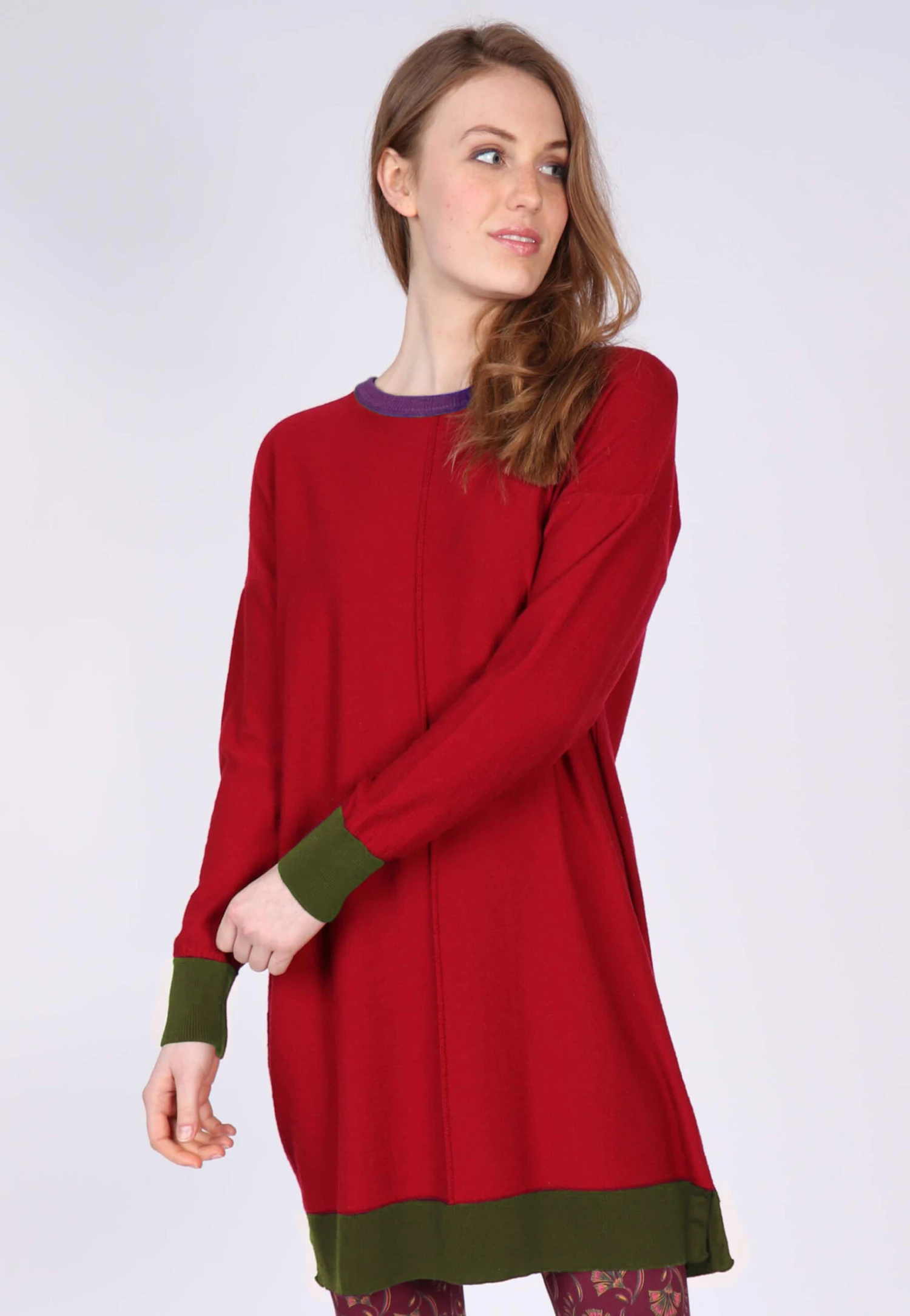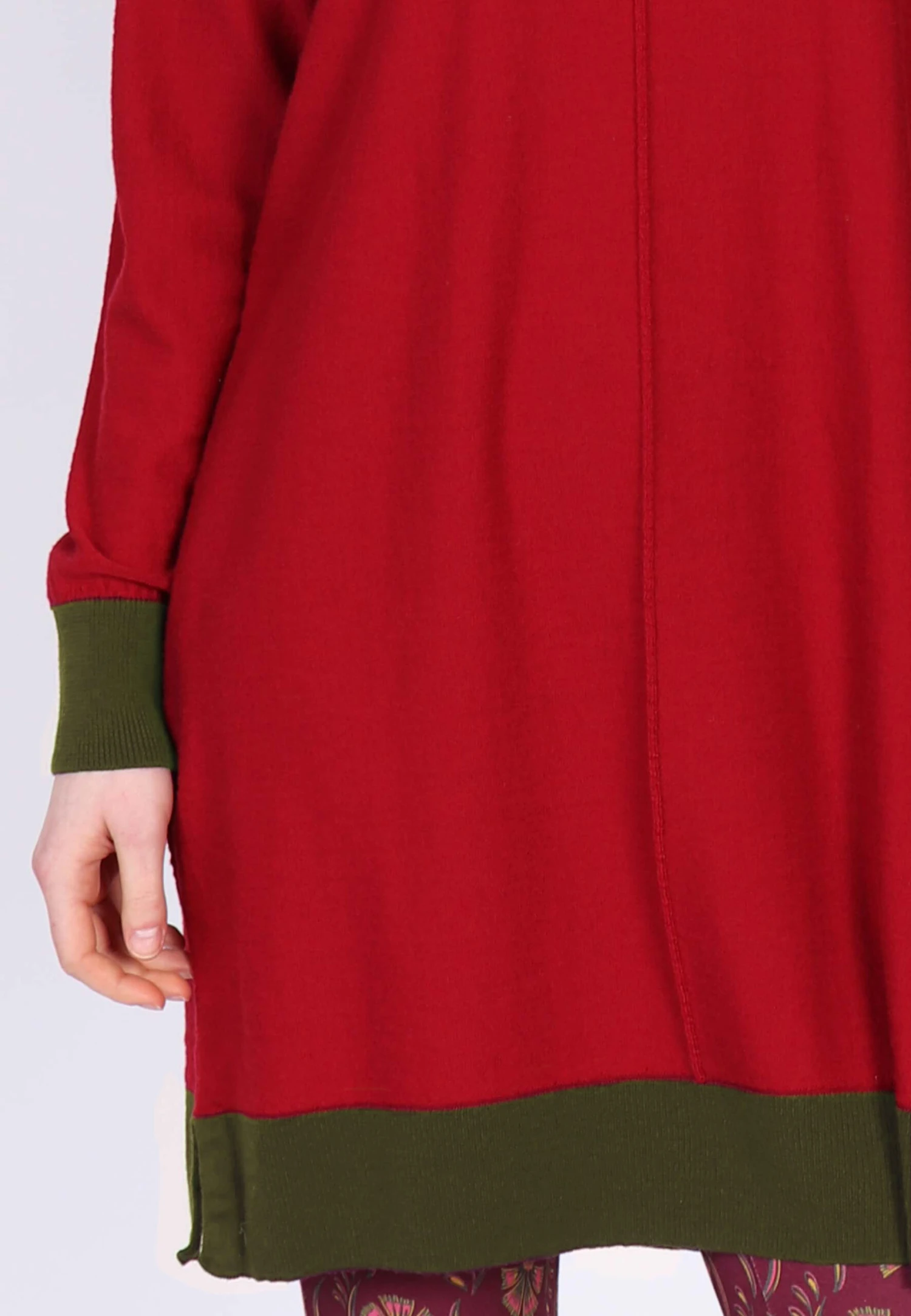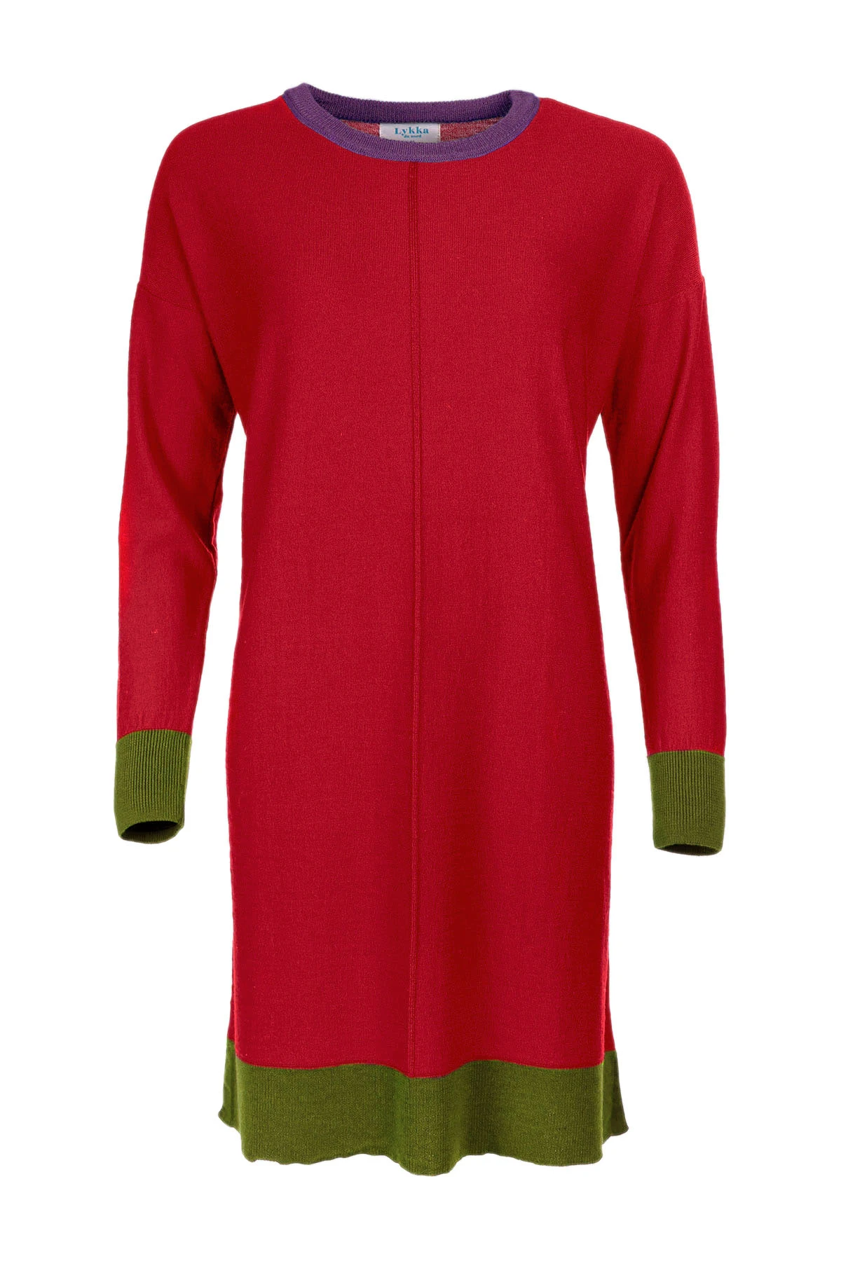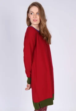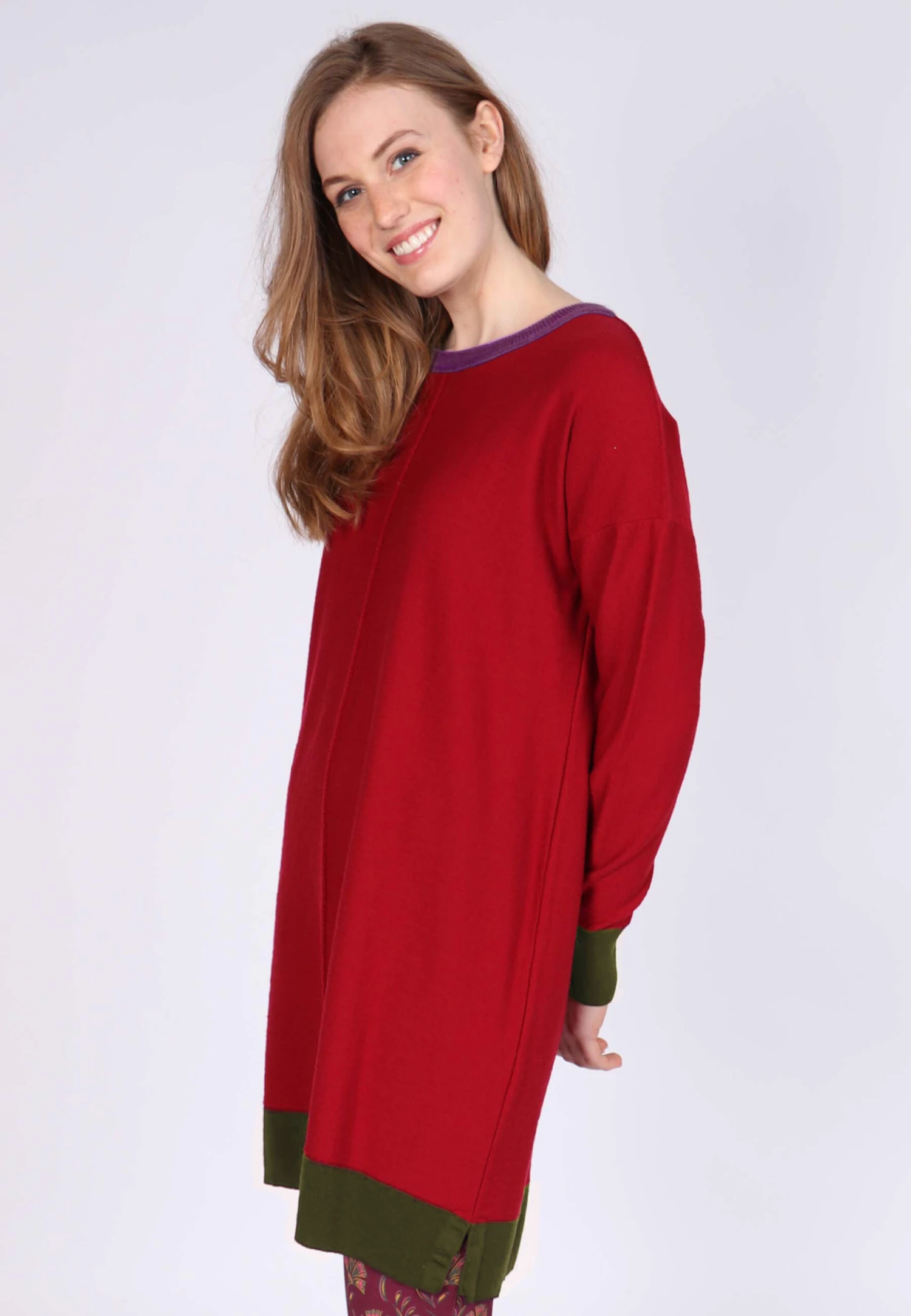 Klassisch-modern ist unser Strickkleid Bibiana. Farblich abgesetzte Kanten und überschnittene Ärmel sorgen für einen sportlichen Look. Durch die verwendete Merinowolle lässt sich dieser Style angenehm tagen.