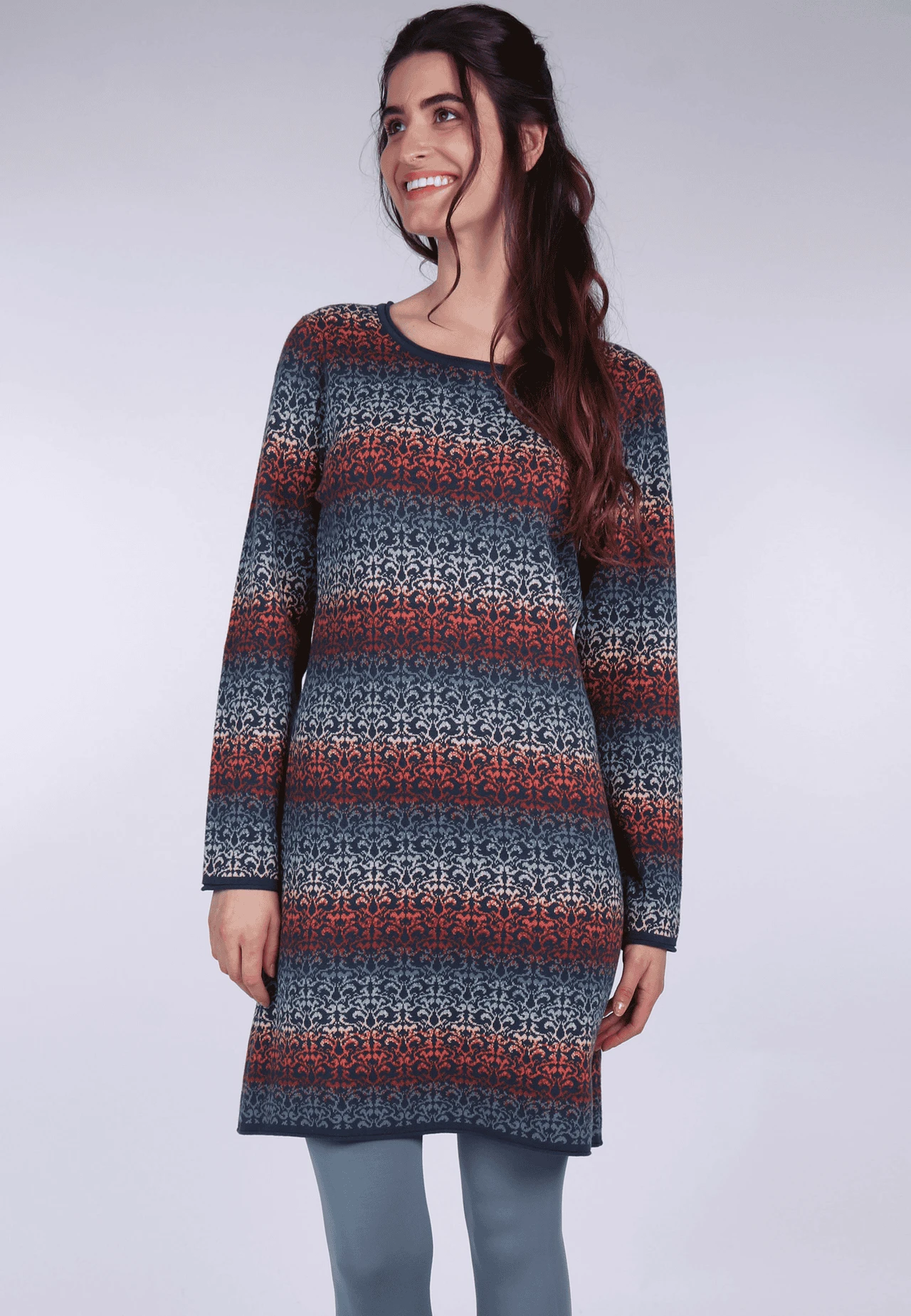Sportlich-elegant ist das Kleid Janina mit ornamentalem Muster. Hochwertige Baumwolle sorgt für einen angenehmen Tragekomfort, ein idealer Begleiter für jeden Tag.