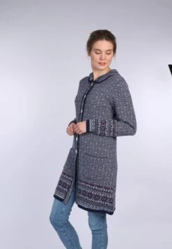 Gesamtlänge 88 cm bei Größe M. Kuschelig warm und weich durch den Winter bringt Sie unser Mantel Ann. Ein toller Allrounder für jeden Tag. Typisch nordische Muster zieren die Säume und sorgen für eine tolle Optik.