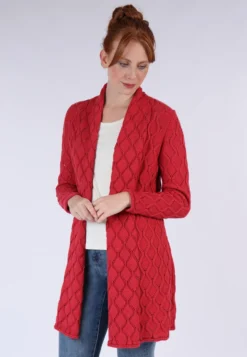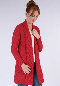 Länge bei Größe M 86 cm. Klassisch-sportiver Schalkragen-Cardigan mit aufwändigem Strickmuster. Optimaler Tragekomfort bietet die verwendete weiche Baumwolle. Die erstklassige Verarbeitung machen diesen langen Cardigan zu einem echten Lieblingsstück.