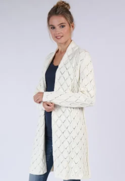 Länge bei Größe M 86 cm. Klassisch-sportiver Schalkragen-Cardigan mit aufwändigem Strickmuster. Optimaler Tragekomfort bietet die verwendete weiche Baumwolle. Die erstklassige Verarbeitung machen diesen langen Cardigan zu einem echten Lieblingsstück.
