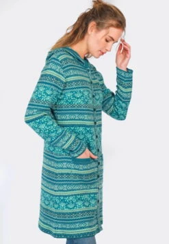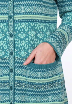 Länge 88cm (M). Ein Strickmantel, der ihre Garderobe auf eine neue Ebene hebt! Mit seinen aufgesetzten Taschen und der Kapuze ist er der perfekte Begleiter für jeden Tag. Das aufwändige Jacquard-Muster macht ihn zu einem absoluten Hingucker und verleiht jedem Outfit das gewisse Etwas. Die hochwertige Qualität aus Organic Cotton sorgt für einen angenehmen Tragekomfort.