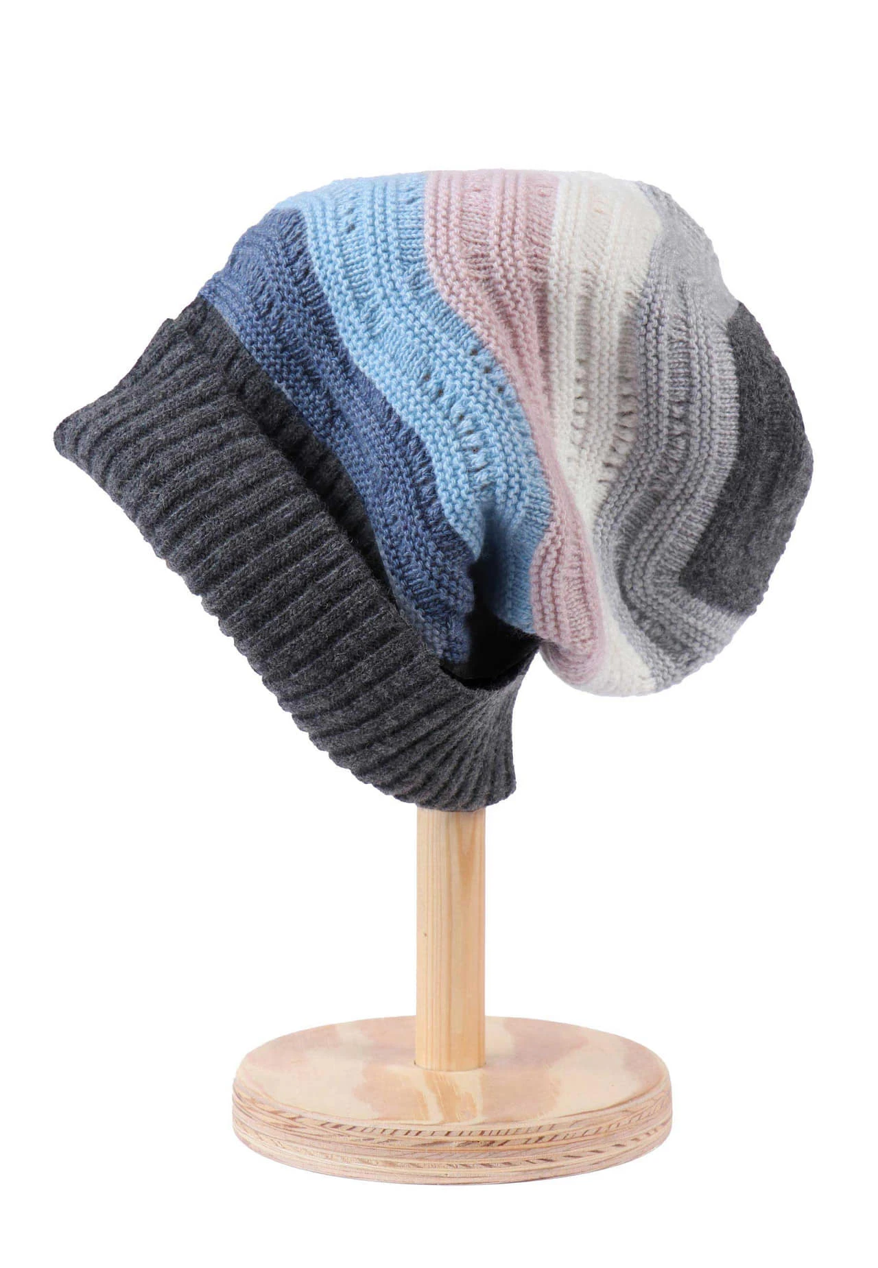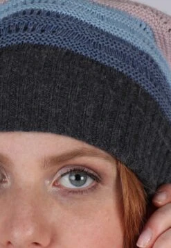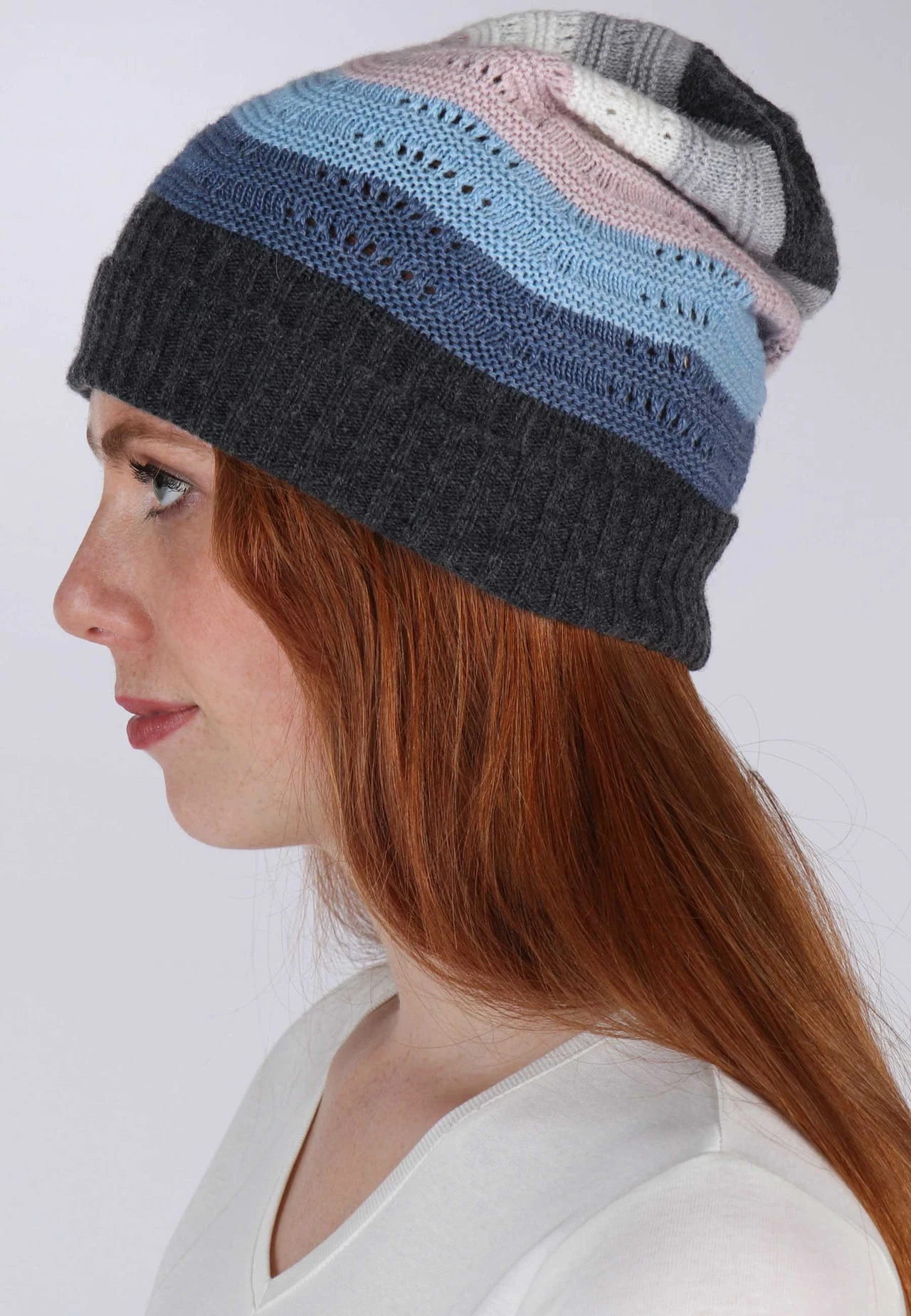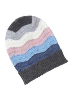 Diese Mütze ist der perfekte Begleiter für kalte Tage. Das breite Rippenbündchen sorgt für einen guten Sitz. Das farbenfrohe Ajour-Streifenmuster rundet den femininen Winterlook ab.