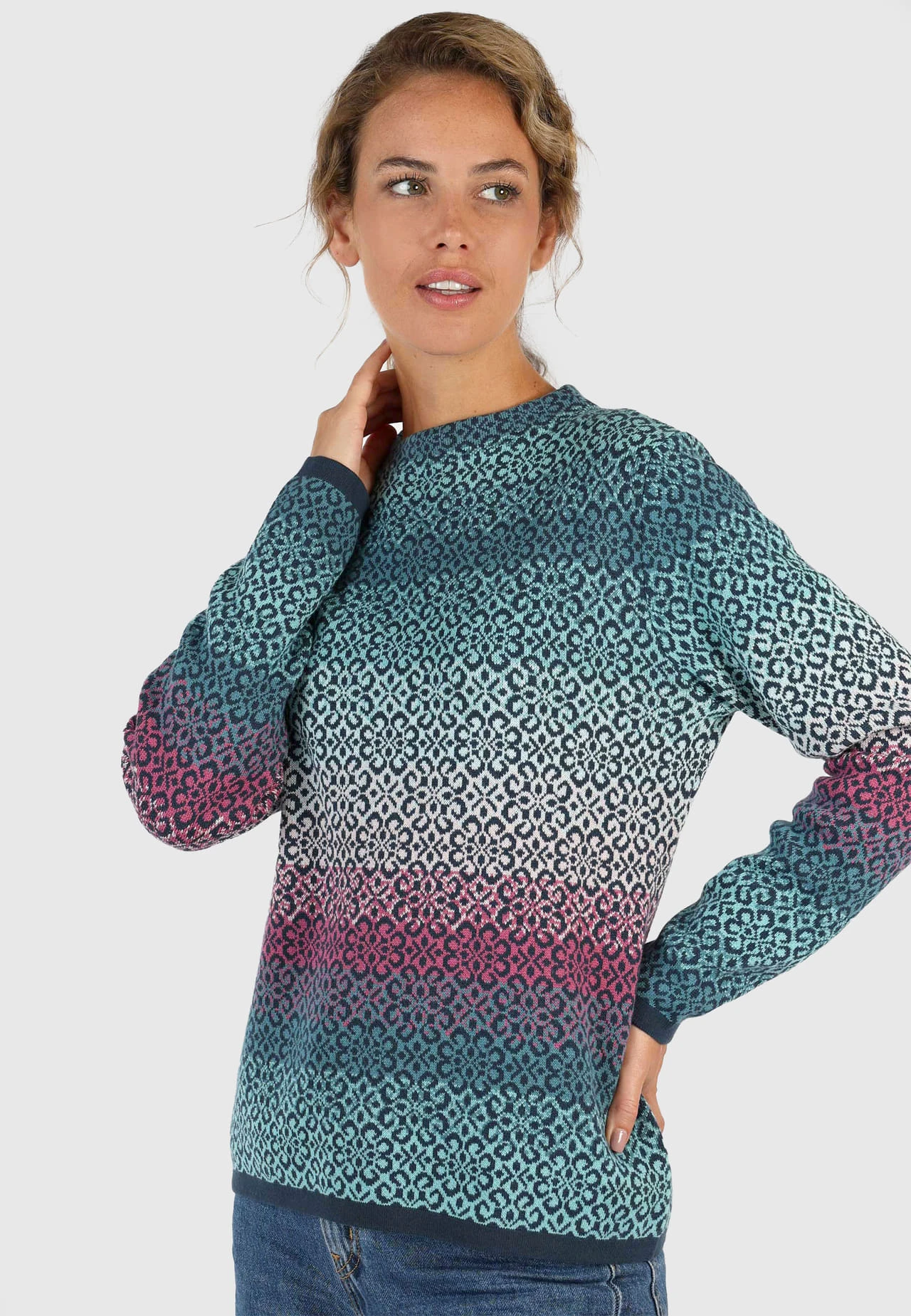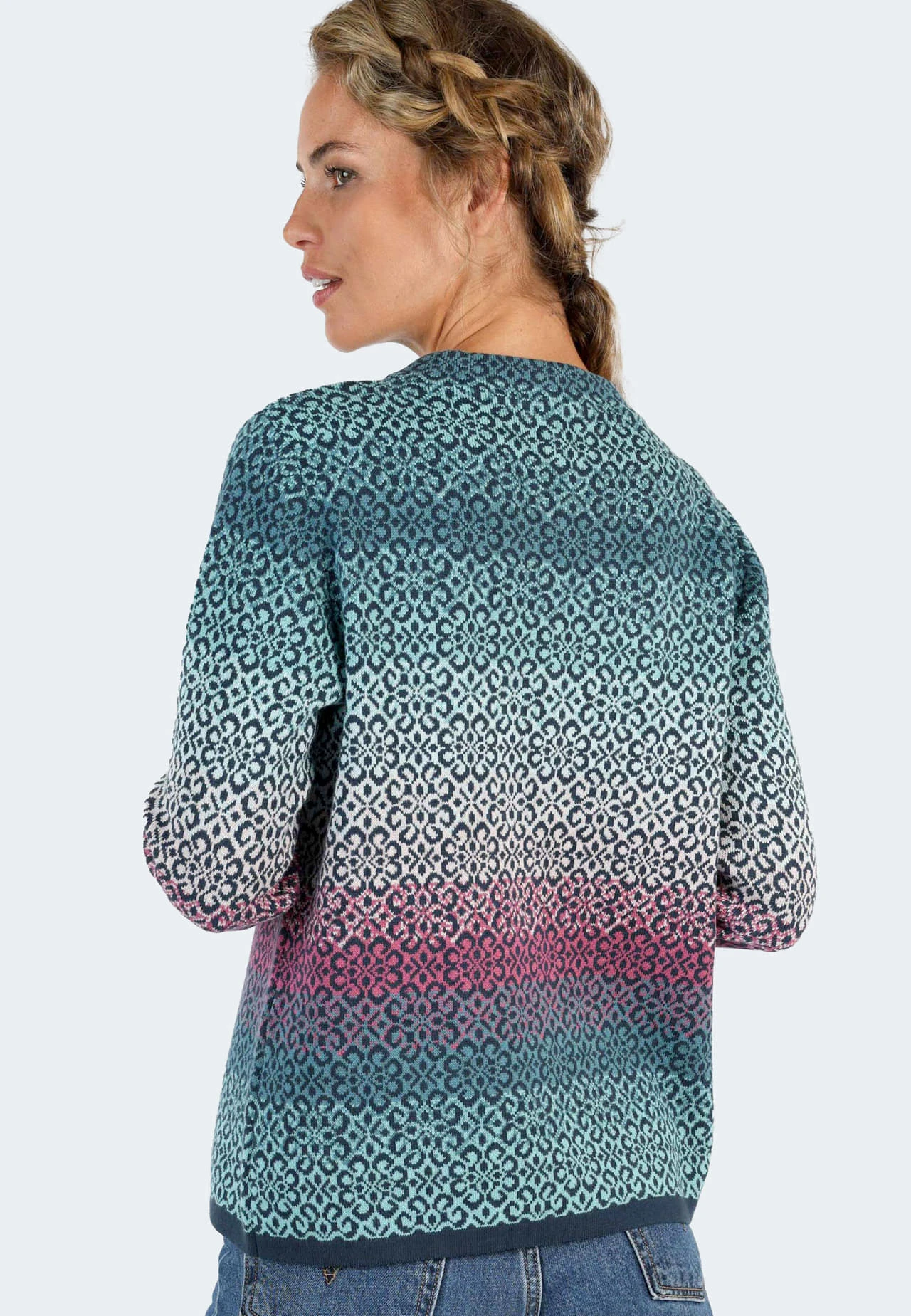 Länge 61cm (M). Unser Klassiker DORIT zeigt sich hier mit einem wunderbar harmonischen und bunten Verlauf. Spannend mit nordischem Muster ist dieser Pullover ein toller Begleiter für jeden Tag. Aus 100% Baumwolle gefertigt sorgt er zusätzlich für einen angenehmen Tragekomfort.