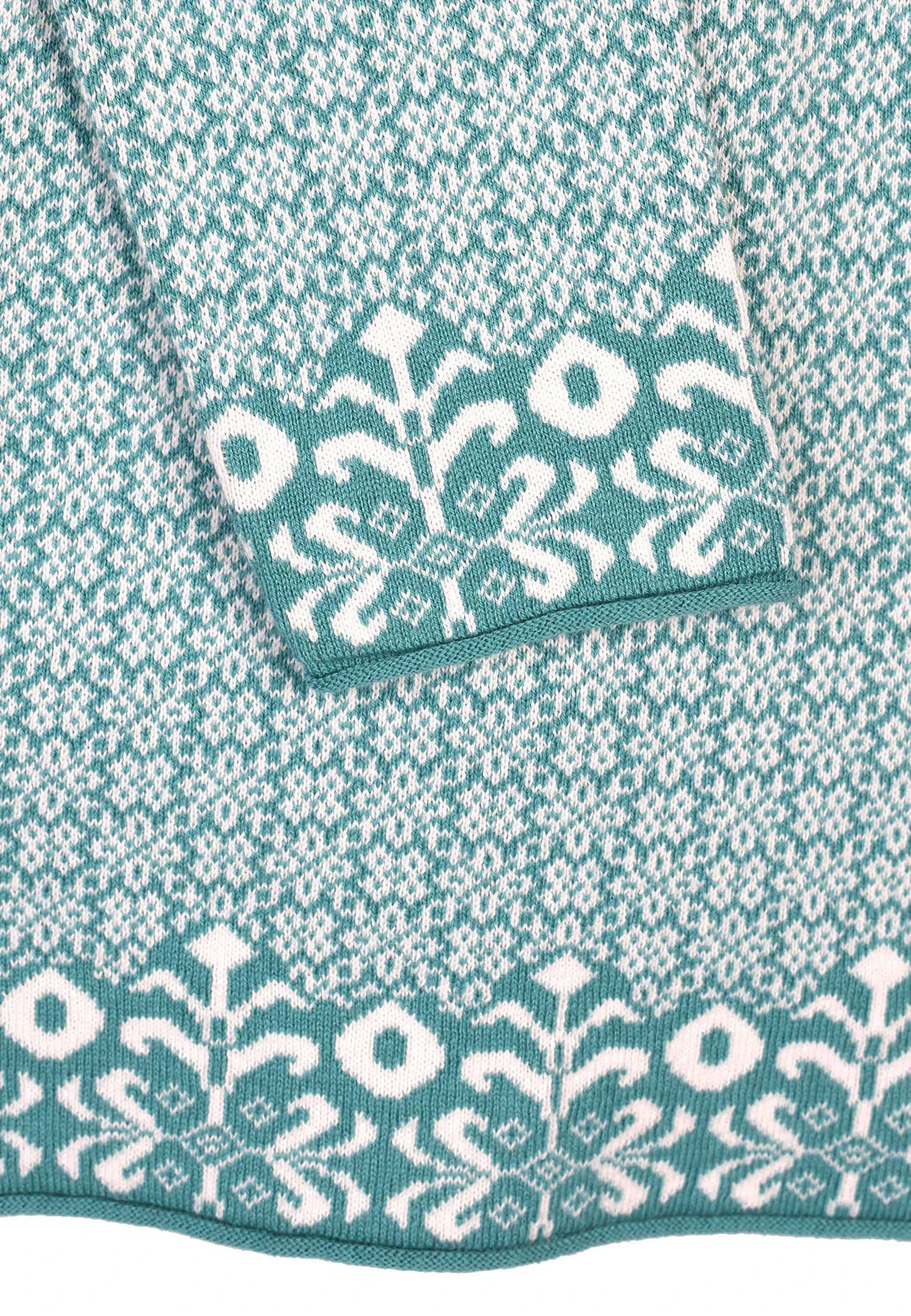 Das auffällige nordische Jacquard-Muster verleiht diesem Pullover eine einzigartige und winterliche Note, die sich hervorragend für die kalten Tage eignet. Hergestellt aus einer sorgfältig ausgewählten Mischung aus Baumwolle und Kaschmir, bietet dieser Pullover ein unwiderstehlich weiches und angenehmes Tragegefühl.