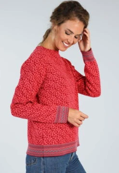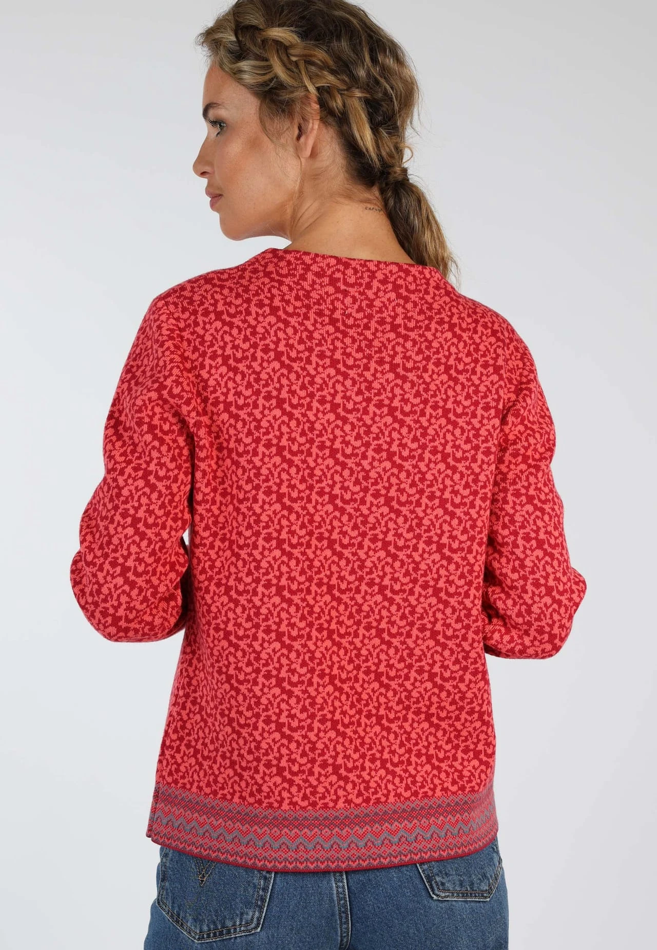 Länge 61cm (M). Unser Klassiker DORIT aus Jacquard-Strick mit nordischem Muster ist aus 100% Baumwolle und ein toller Begleiter für jeden Tag. Die farblich abgesetzte Borte und der kleine Stehkragen sorgen für Eleganz und verleihen ein Hauch Scandinavian-Feeling.