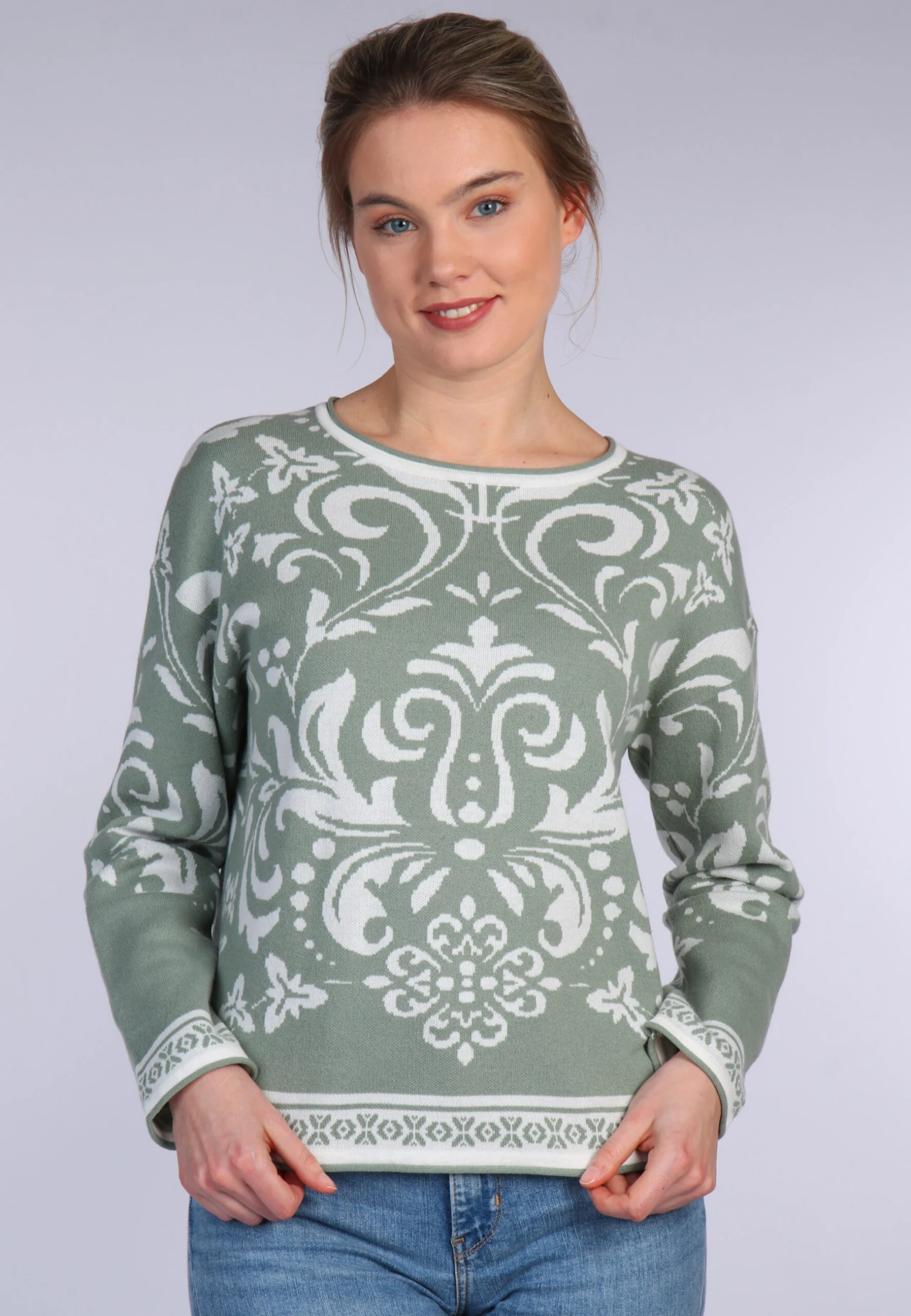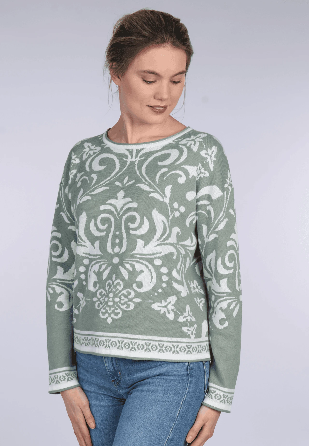 Nordisch-modern ist dieser Rundhalspullover mit nordischem Muster. Hochwertige Baumwolle sorgen fĂĽr einen angenehmen Tragekomfort, ein idealer Begleiter fĂĽr jeden Tag.