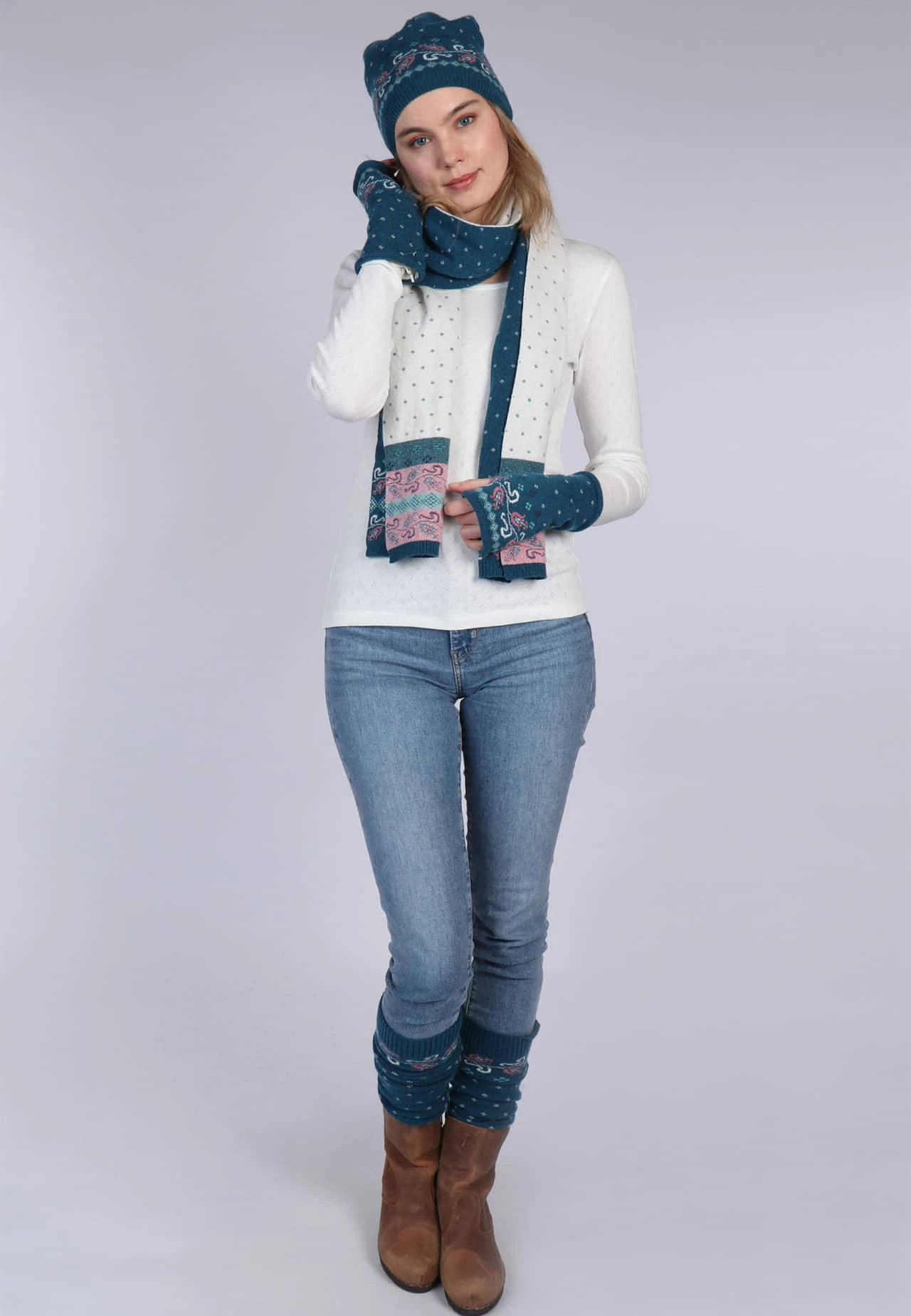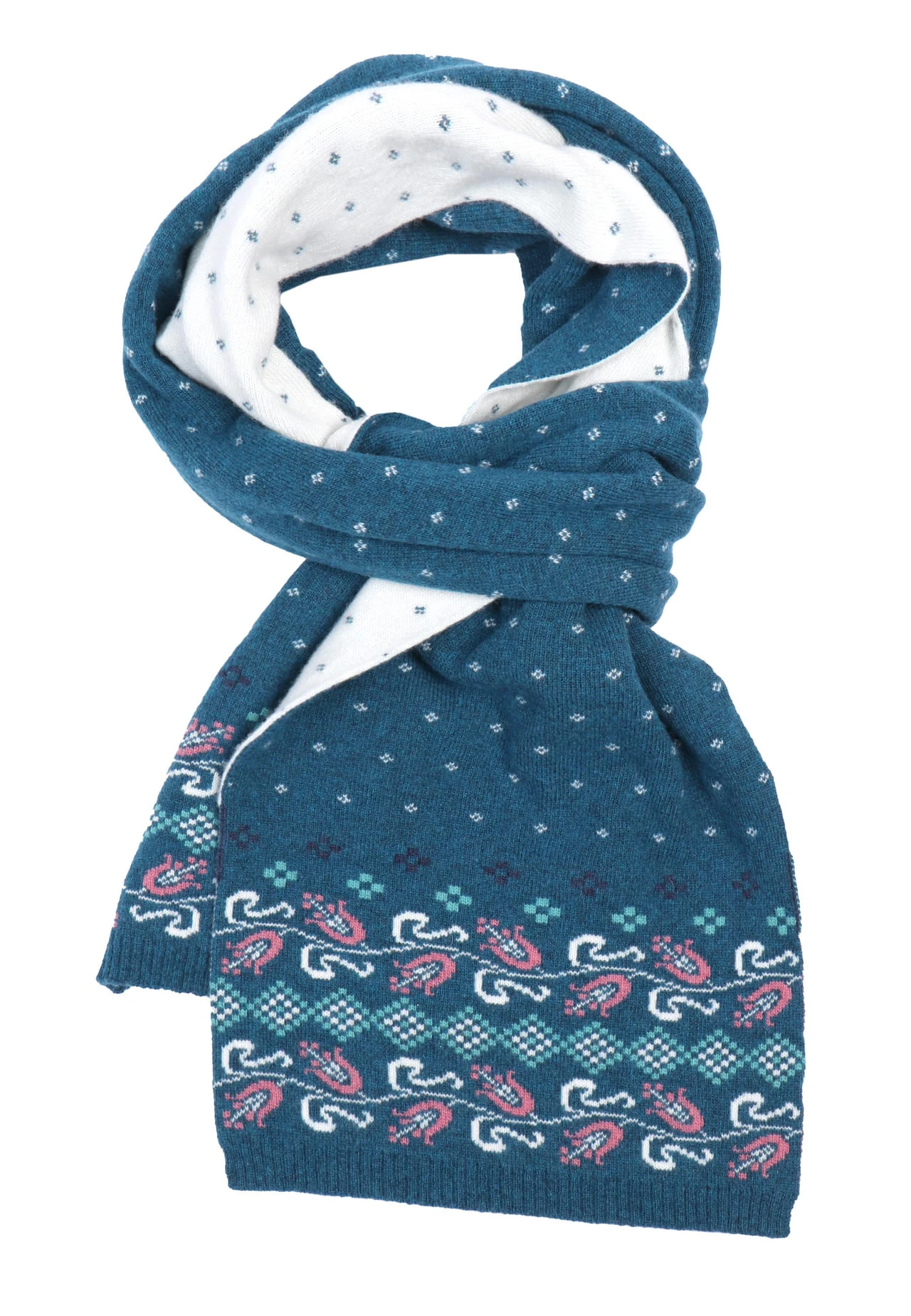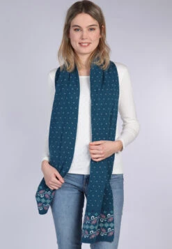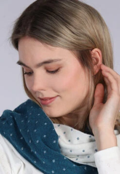 Ein hübsches Muster auf einem kuschelig weichen Schal – ein perfekter Begleiter für die kalten Tage.