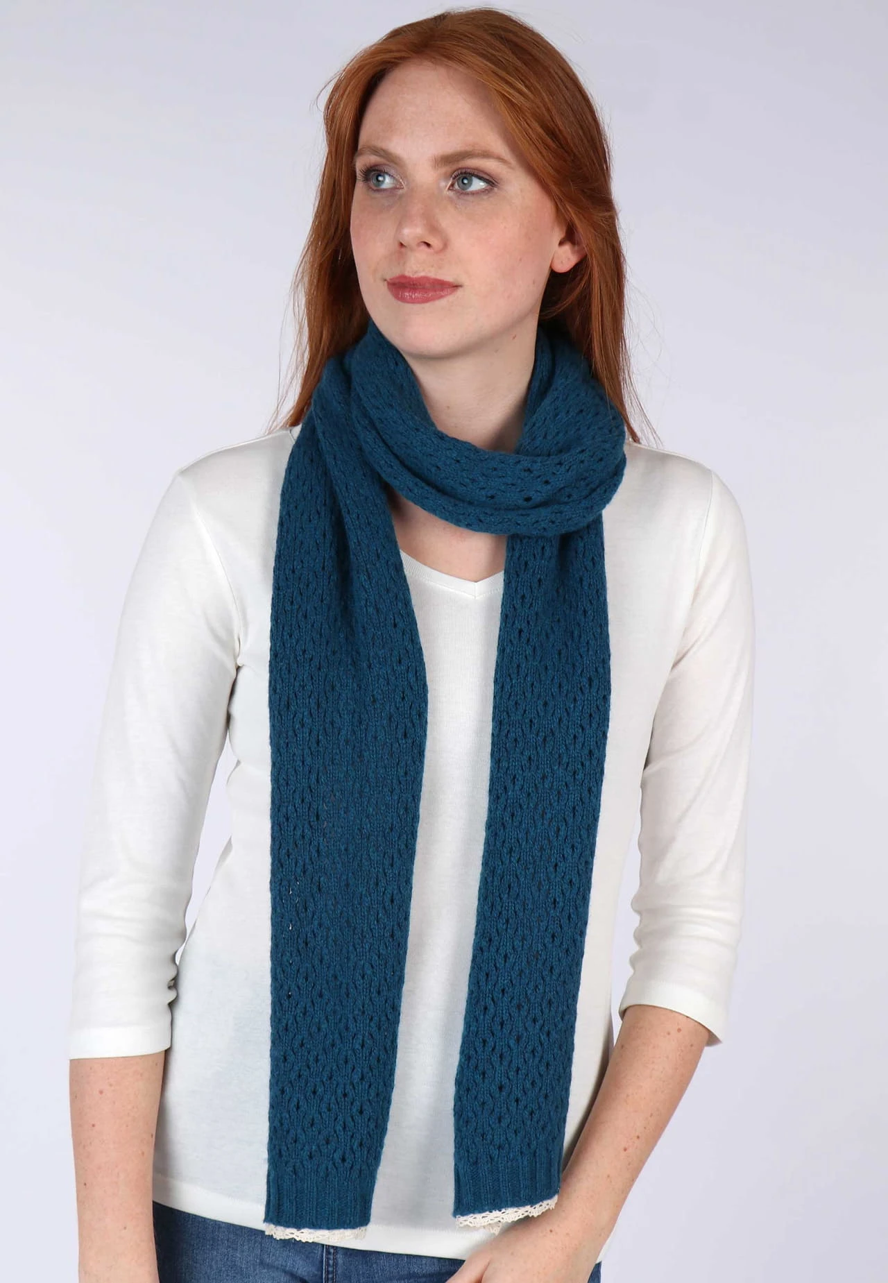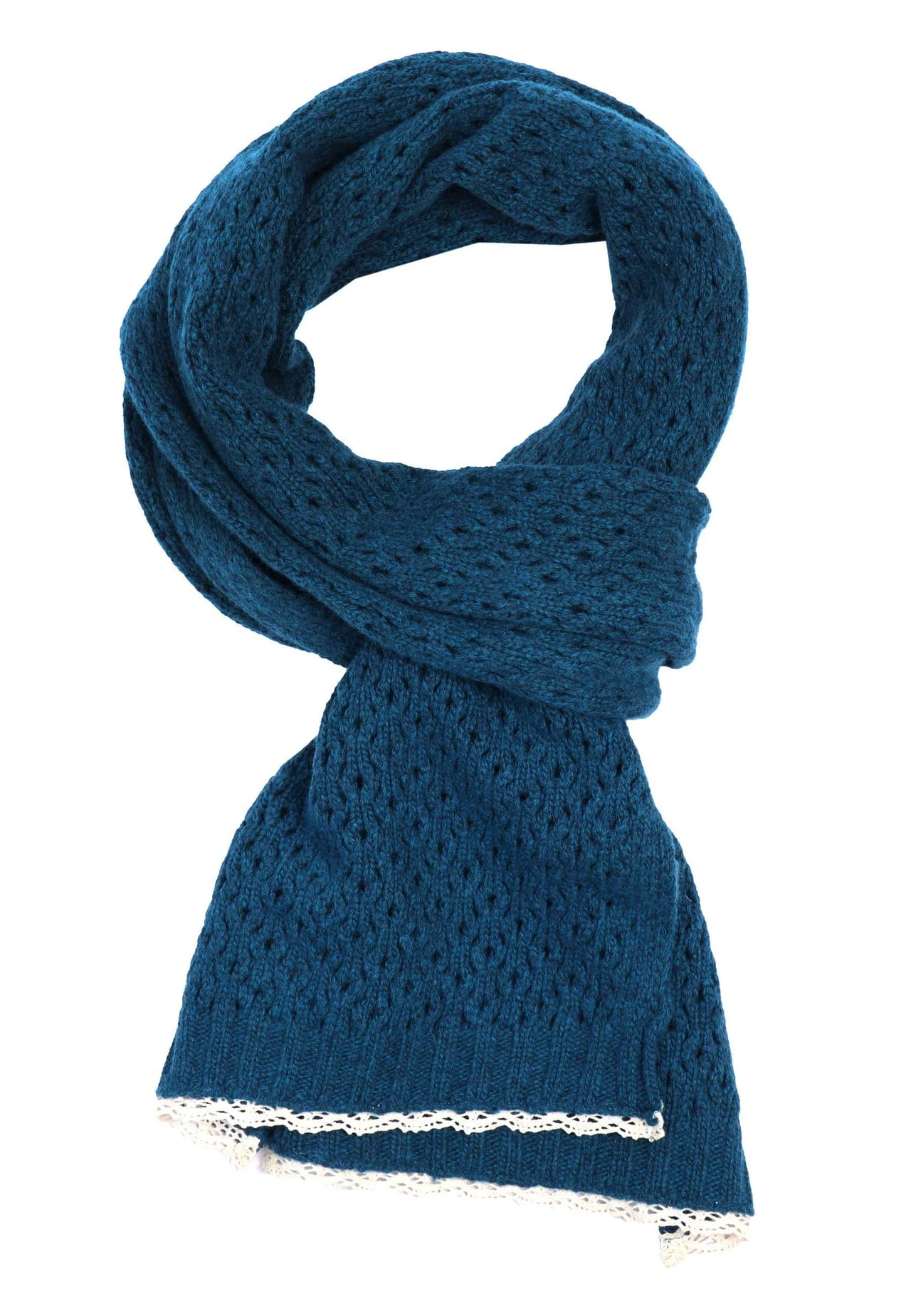 Länge 180 cm. Dieser Schal ist der perfekte Begleiter für kalte Tage. Das schöne Ajourmuster und die zarte Spitzenkante runden den femininen Winterlook ab.