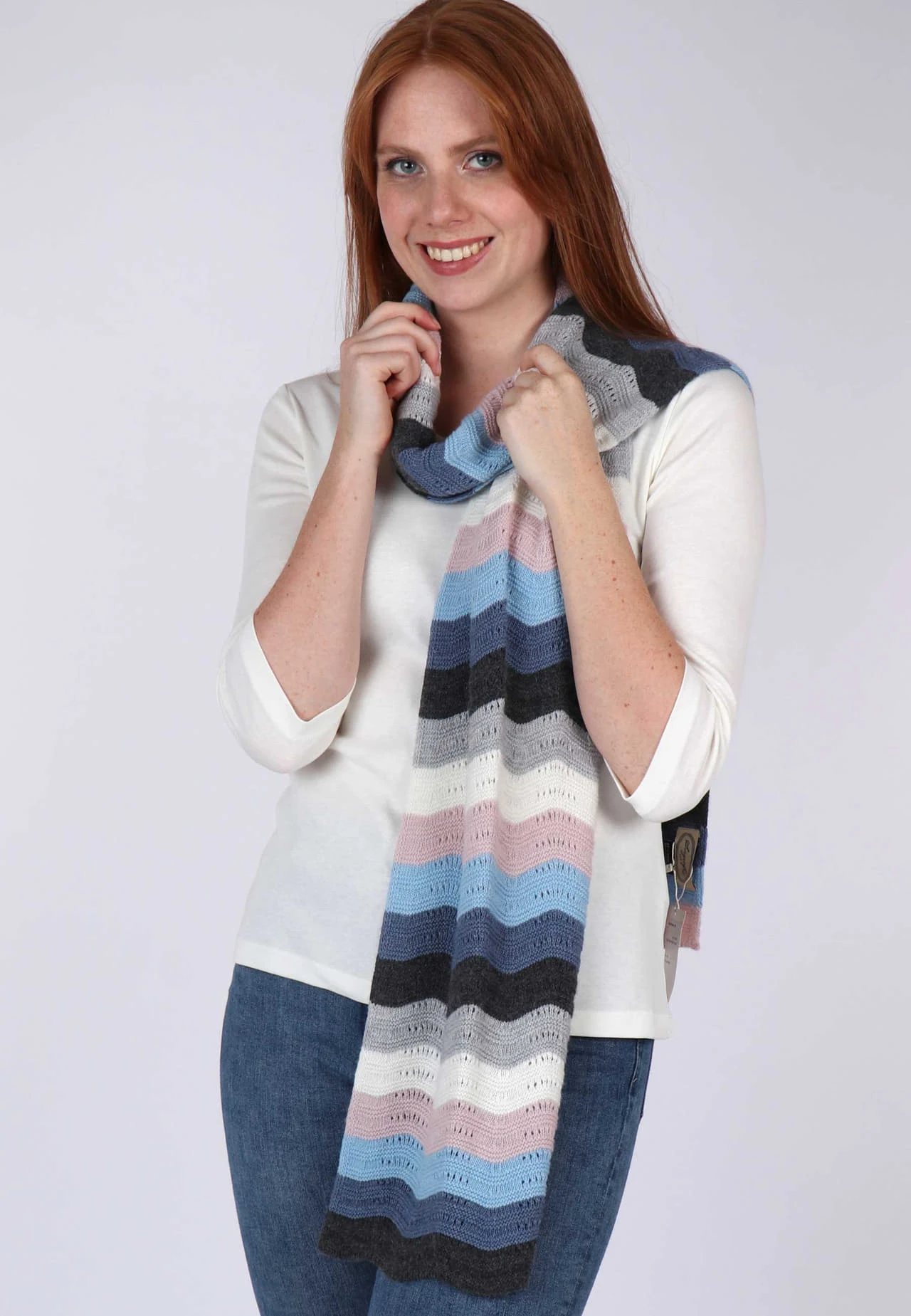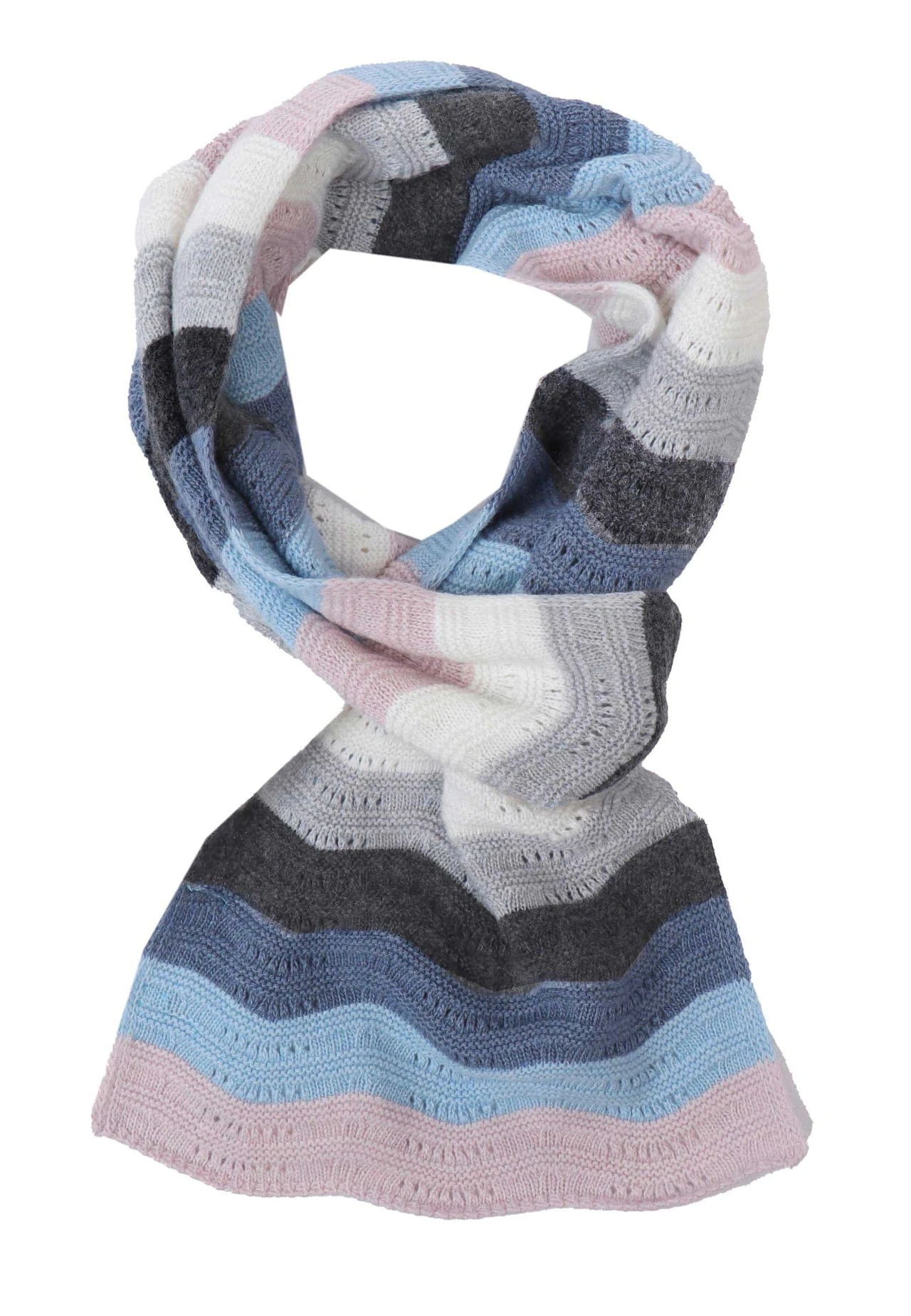 Länge 180 cm. Dieser Schal ist der perfekte Begleiter für die kalten Tage. Das farbenfrohe gestreifte Ajourmuster rundet den femininen Winterlook ab.